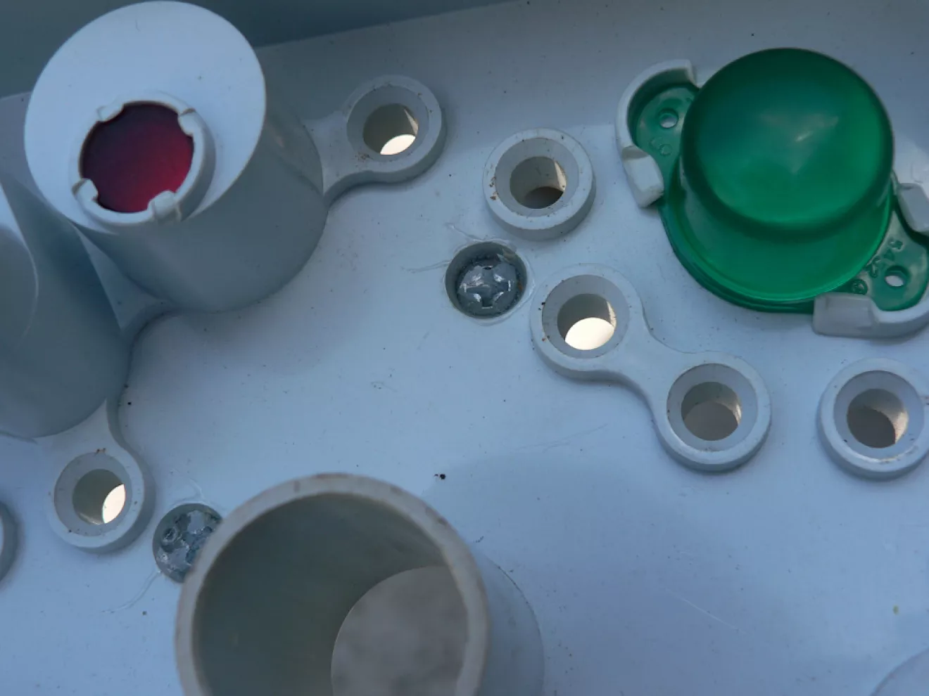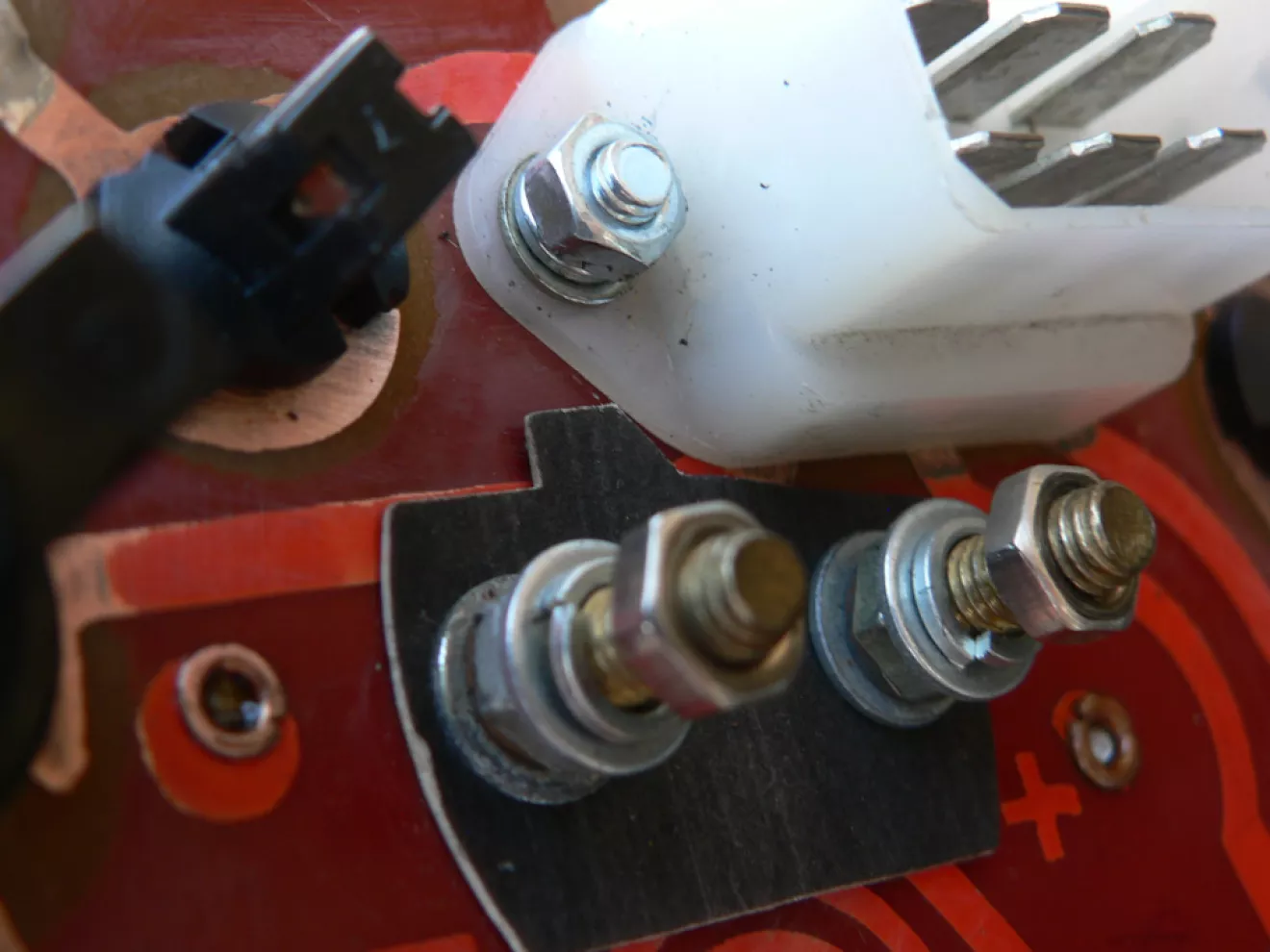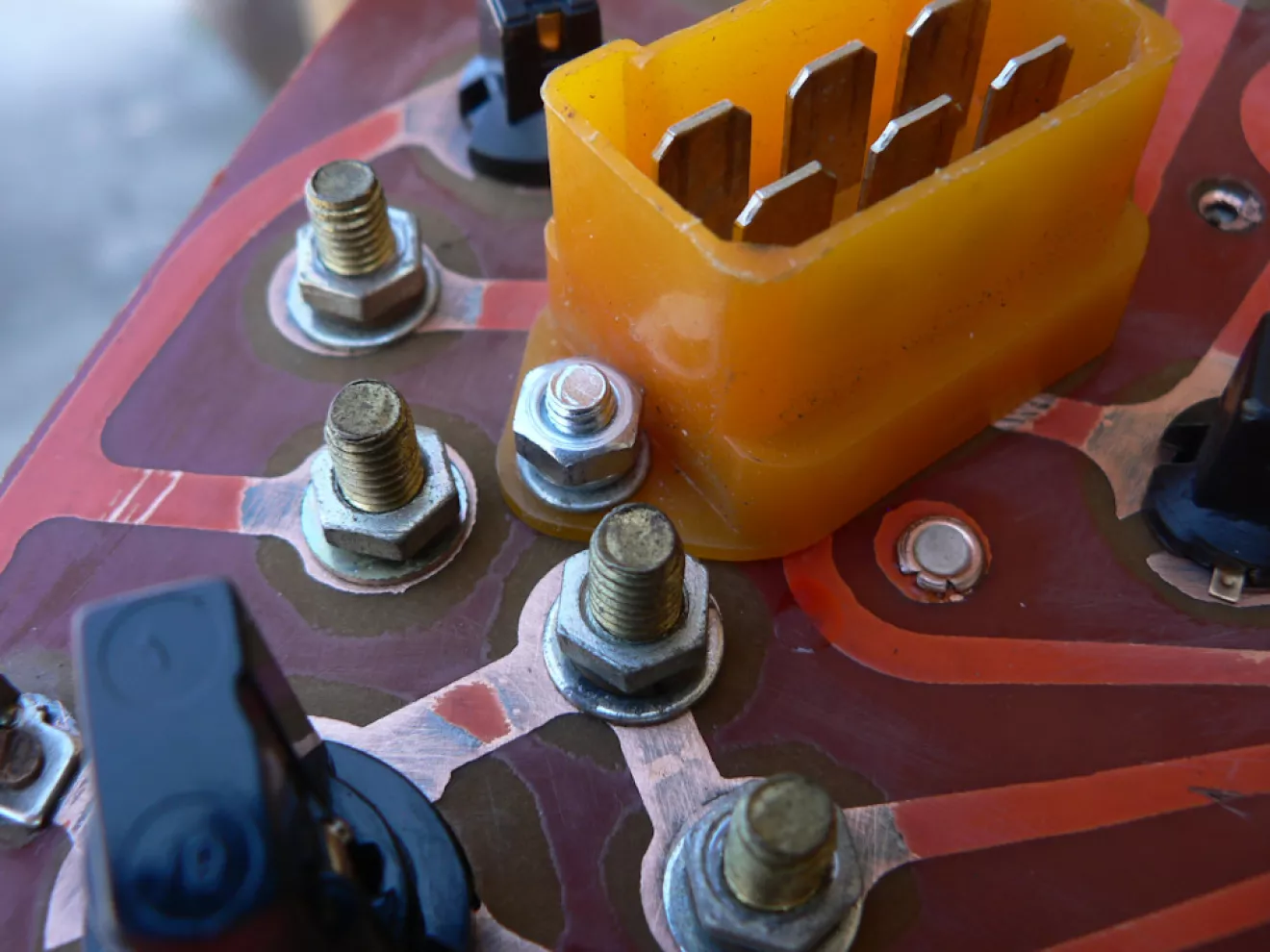 Вместо заклепок хорошо подошел винт М4 — плотно встал в гнездо щитка вместо заклепки, изнутри залил эпоксидкой, а дальше закрепил гайками.