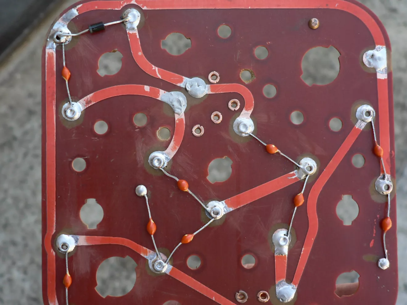 После высверливания заклепок и полной разборки заменил пробитый диод на D4008, запаял трещину в дорожке и пропаял все заклепки. Все площадки очень сильно окислились — полдня ушло на зачистку и пайку.