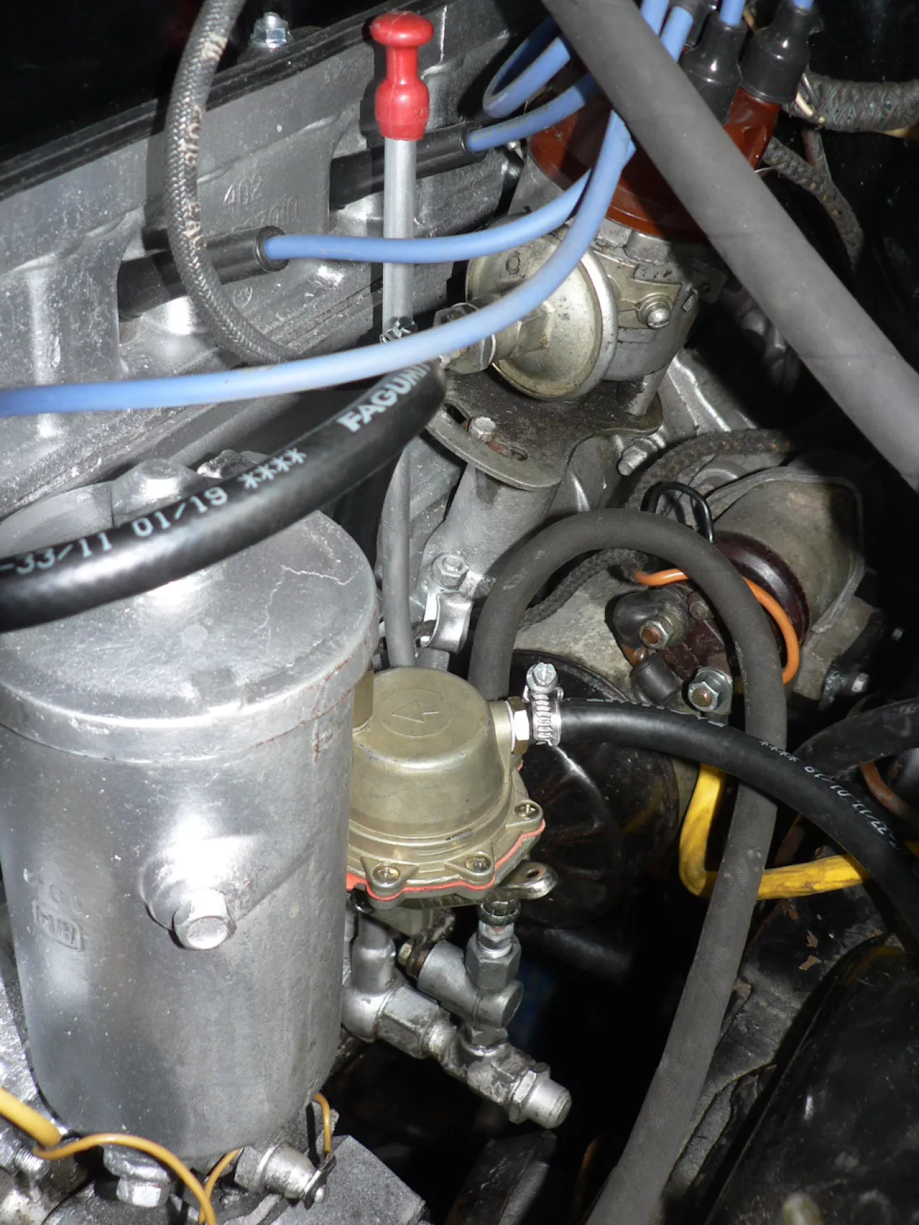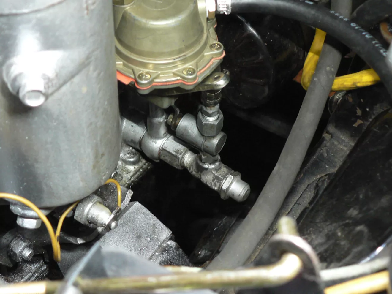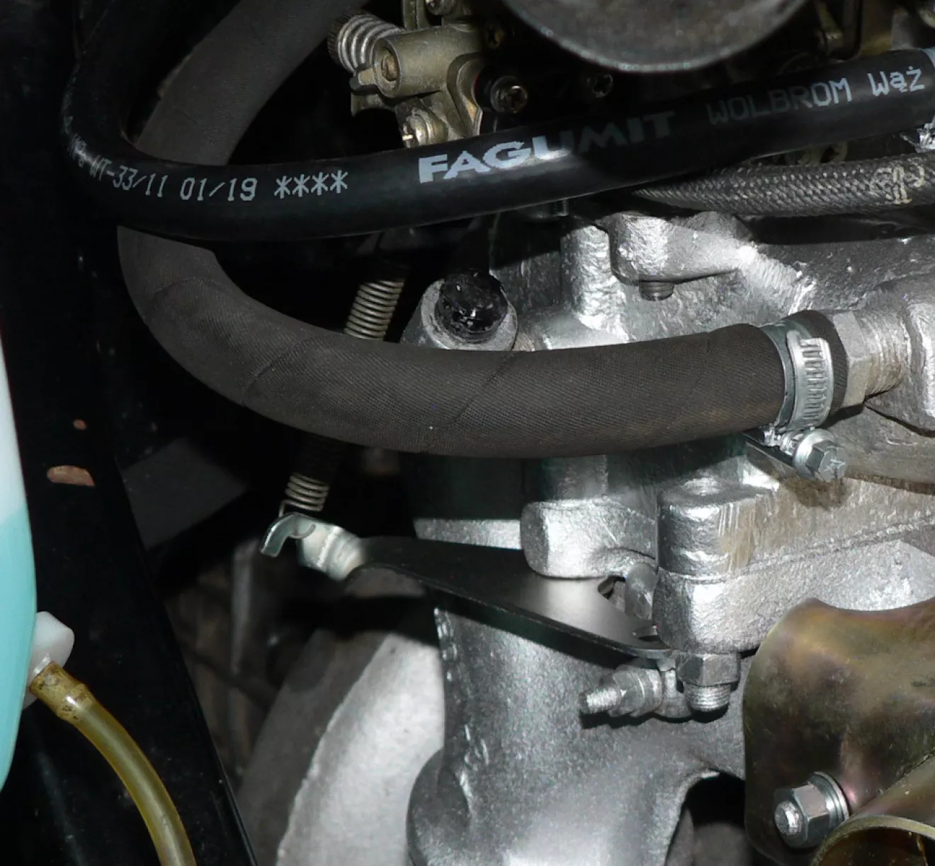 Также удалось закрепить возвратную пружину дросселя К-151 под шпильку газопровода-коллектора. С установкой нового высокого щупа, заменой шланга масляного радиатора, подтянули и развернули маслокран — пока все сухо, но это уже радует.
