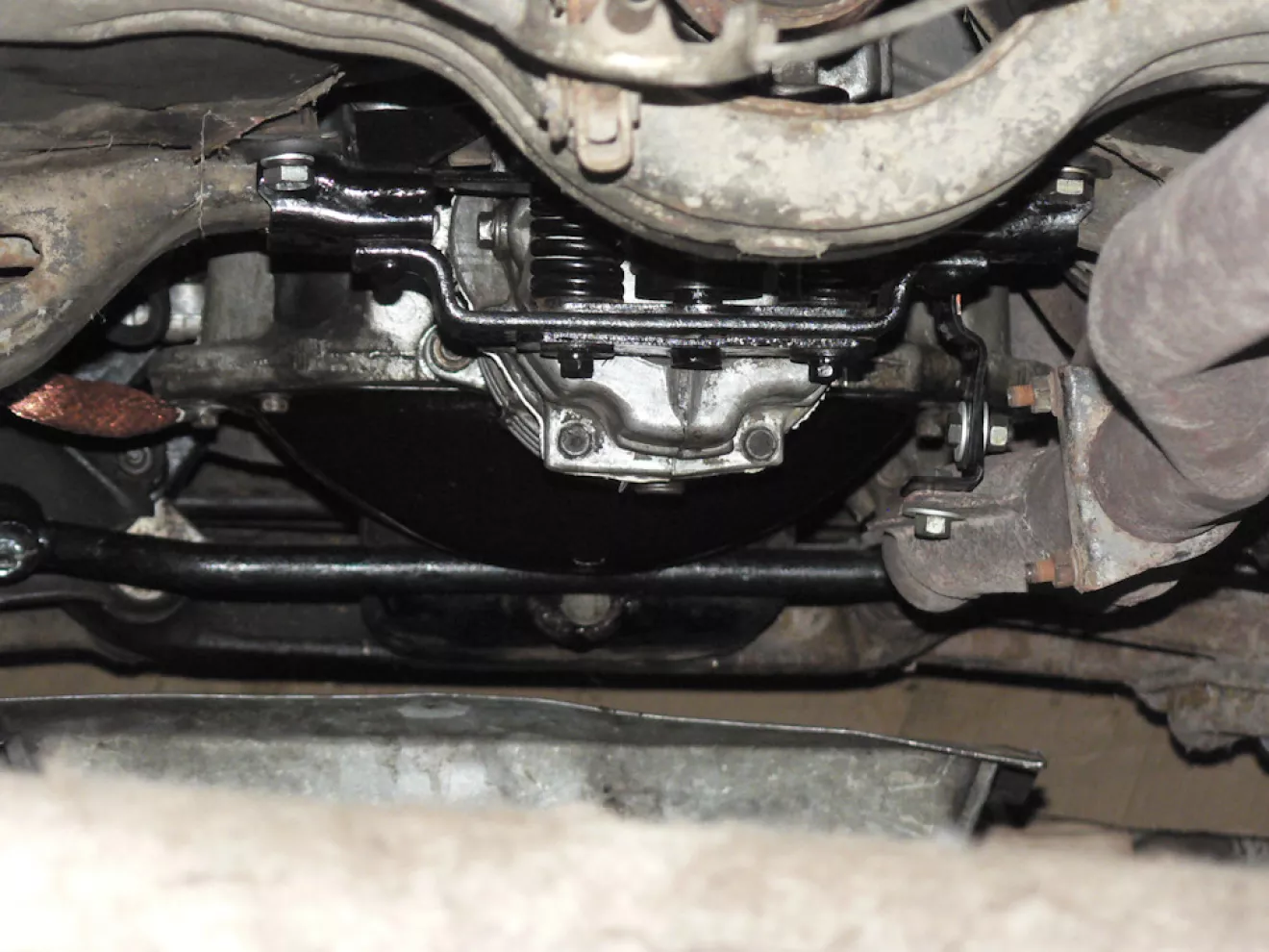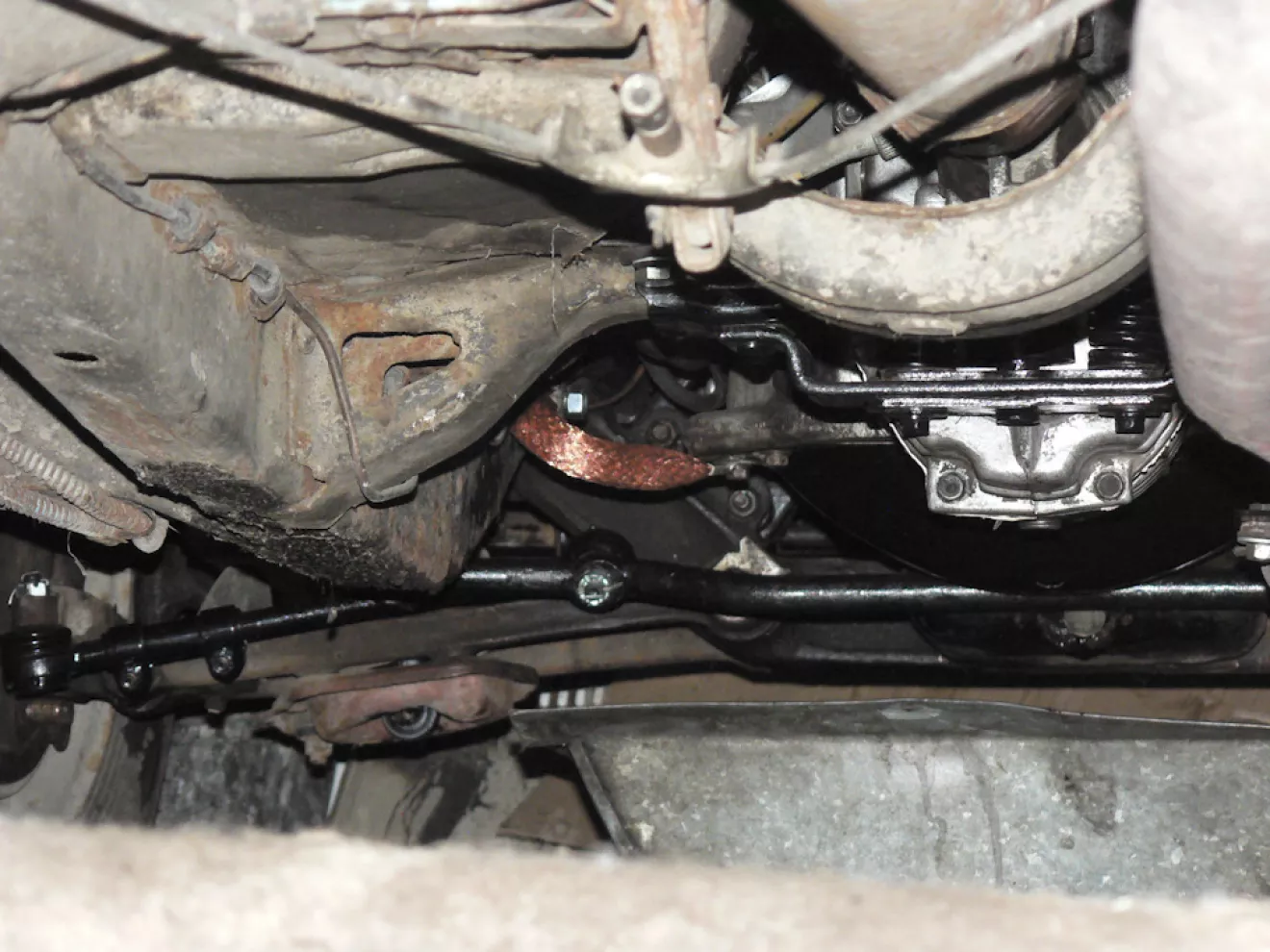 Заодно уже закончили установку 5 ст. КПП от Газели — старую 4 ст. решили не ремонтировать. Заменили шестерни привода спидометра и перегнули кулису + переделали кронштейн крепления к КПП выпуска. Осталось заменить бак, патрубки и трубки к нему, заборник и датчики. Старые просто приржавели к своим местам да и смысла с ними бороться не вижу.