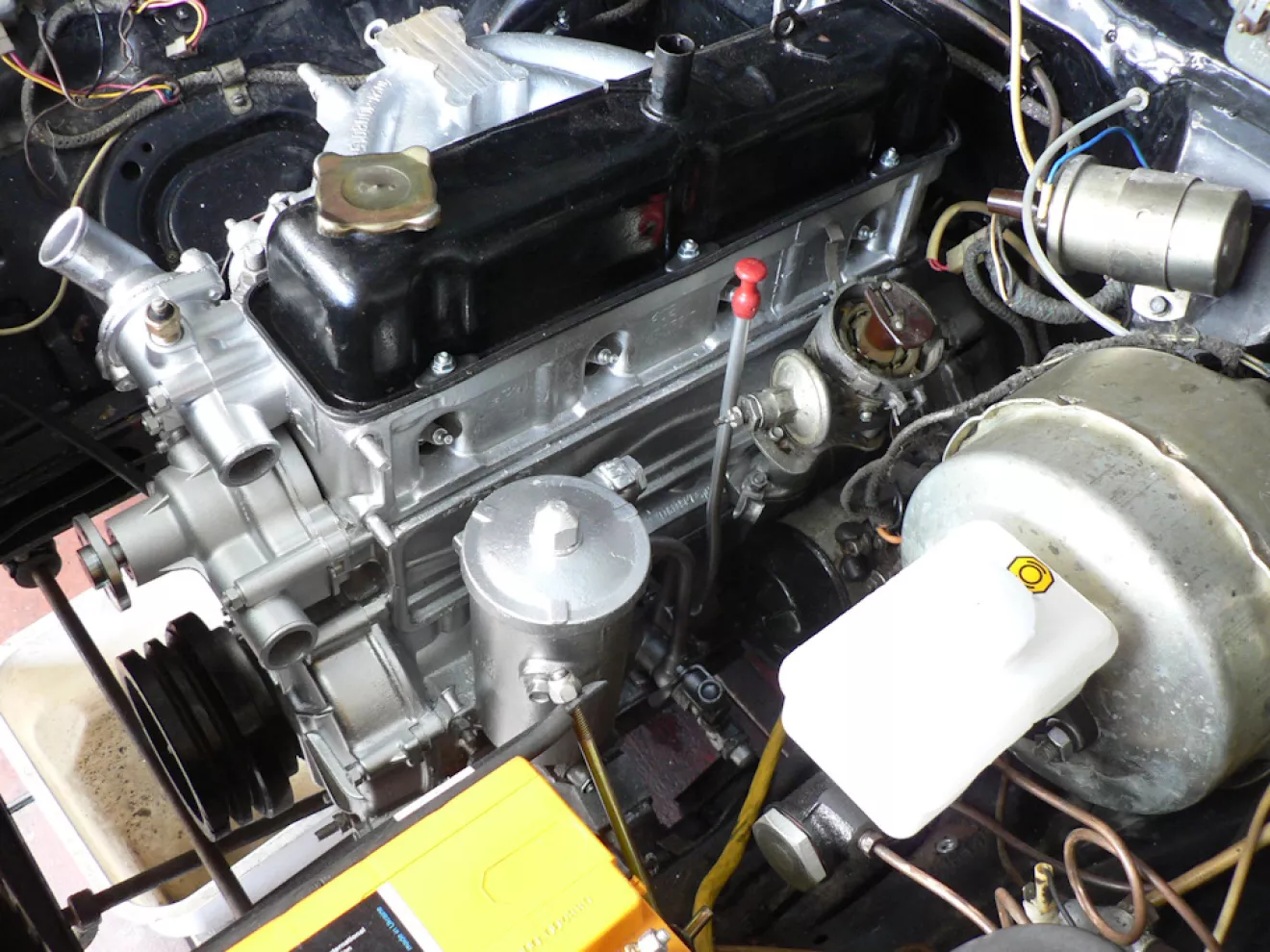 Появился удлиненный масляный щуп, новые главный тормоза и сцепления. Заодно уже и помыл двигатель, а после этого грех не освежить. ))