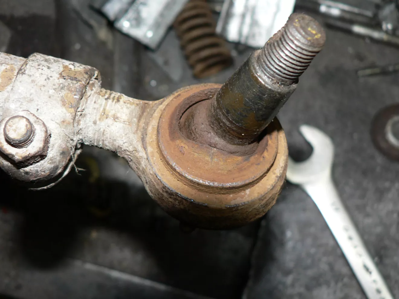 Три шарнира просто заржавели и не смогли разобрать, только один в хорошем состоянии, а по факту останется только длинная тяга. ((