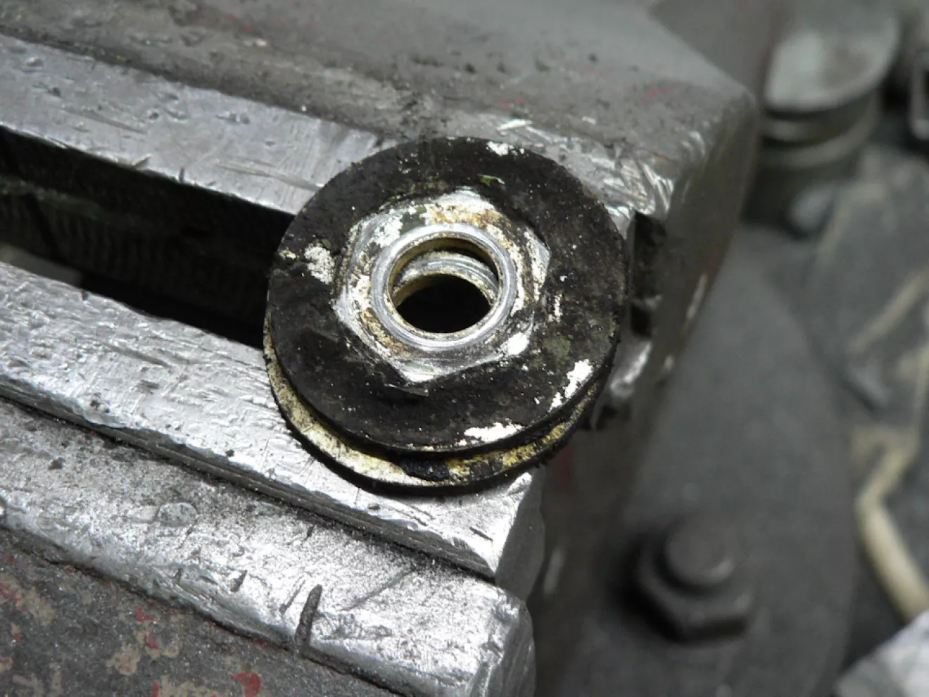 Вылез болт крепления бензонасоса к блоку — известный косяк завода и головная боль ремонтника если вовремя не закрутить в блок шпильки, а теперь вот перерезать резьбу и поставить ремонтную шпильку без снятия двигателя, удовольствие ещё то. ((