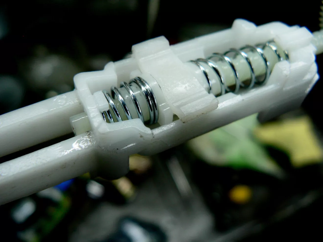 В ходе разборки мне показалось, что он такой же польский, как я сам принц гамбургский — качество пластика никакое, весь какой-то винтами, поведенный как после фена: криво и косо. Я в шоке, но причина неприятностей нашлась: отломалось одно ухо упорной втулки уравнивателя, она выскочила из направляющей и весь механизм закрылся.