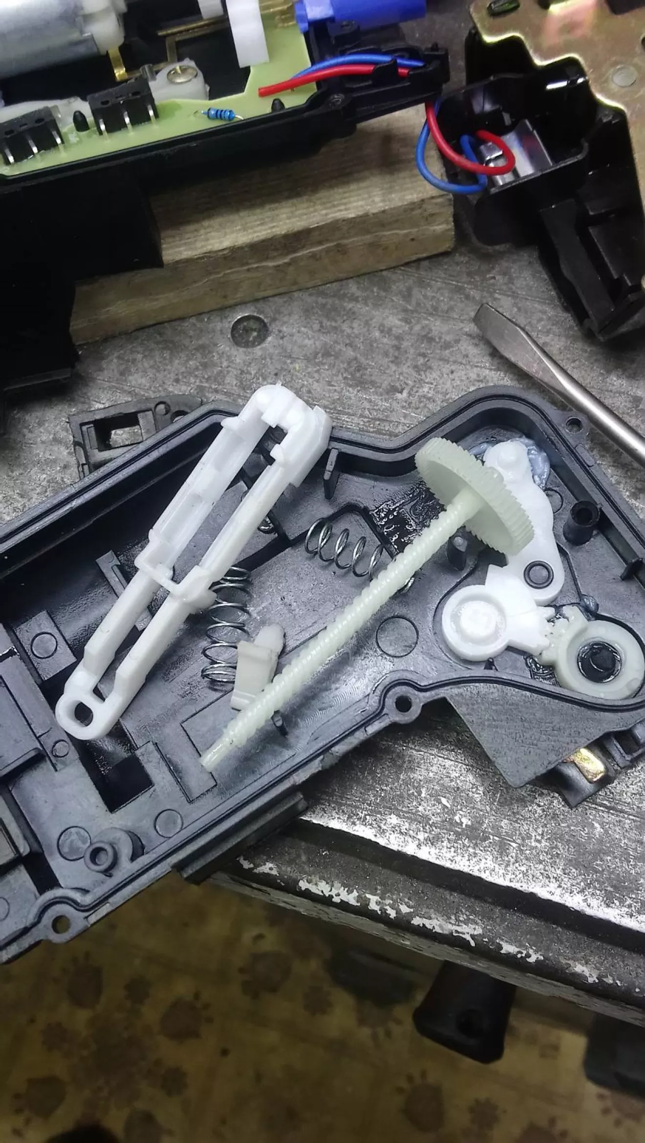 В любом случае его нужно было разобрать и, откровенно говоря, даже не надеялся, что в нем будет что-то ремонтопригодное — при шевелении рычагами в нем явно что-то отломалось или выскочило.