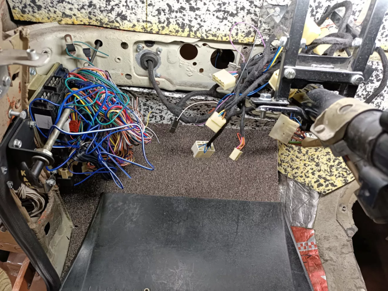 Консервативность кузова отразилась на неудачной компоновке необходимых блоков, которые под самый конец сборки не захотели влезать под защитную боковую панель. Засунуть все это под торпеду, а потом доставать при необходимости тоже не вариант. Пришлось в очередной раз переделать готовую панель, а это крайне неудобное для работы место.