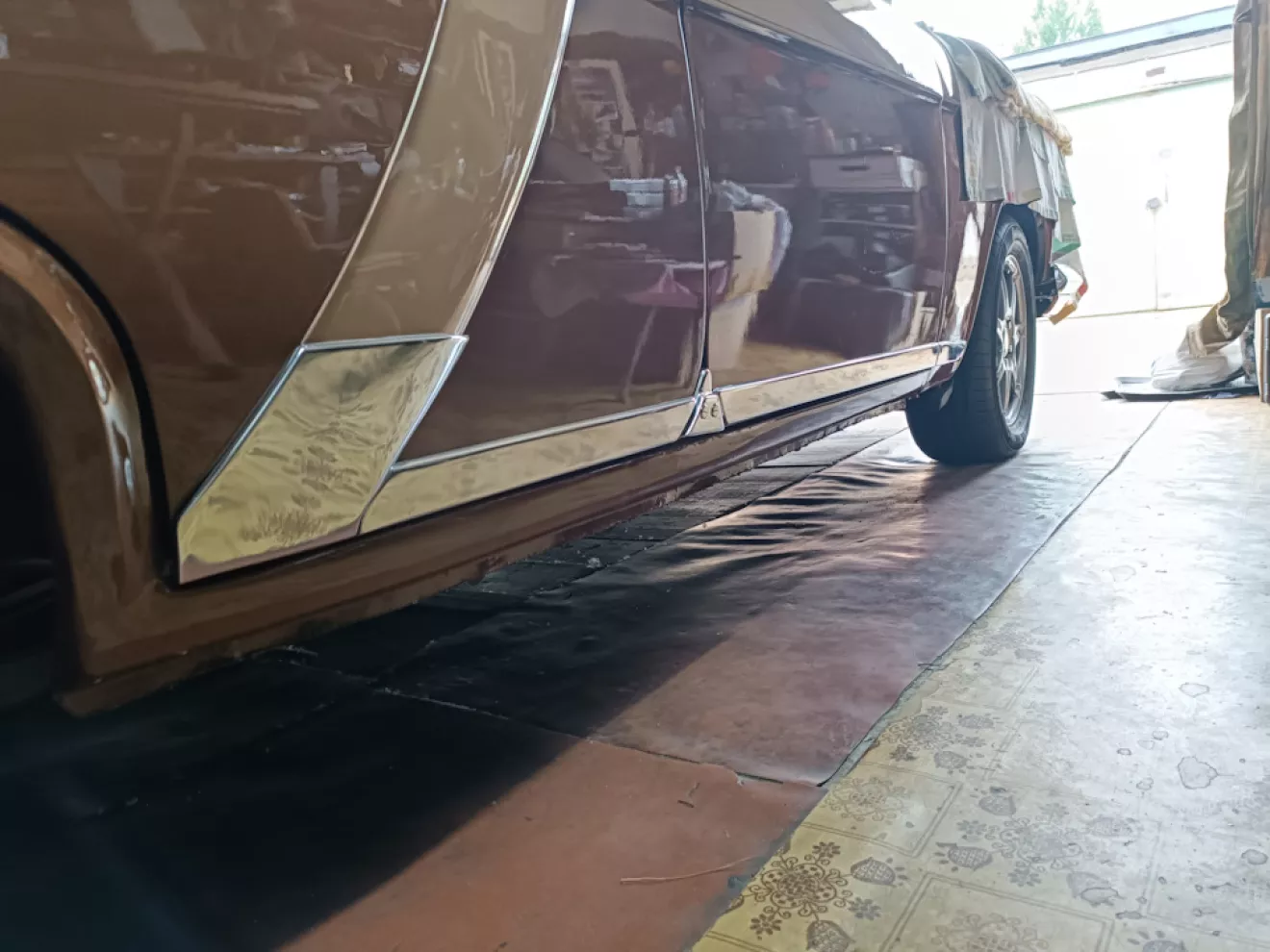 Тактика малых шагов по ходу не влияет на то, какие шаги я делаю сам — практически день ушло на установку двух молдингов на переднюю дверь и крыло, но в целом удачно, если не говорить о том, что все элементы кривые, косые, с заусенцами, сразу же калечат краску, кузов и мой мозг… В общем — это, конечно, не подвиг, но что-то героическое в этом есть, т.к. сегодня закончена навеска всех наружных элементов. Как обычно, весь хром, молдинги ставлю на бронепленку 300 мкм. Все закладные, гайки и саморезы из нержавейки. Также переклепаны все элементы для сборки двери — внутренние бархотки родные, а наружные от 2410, хода на стойку от 24-ки, в дверь от 3110. Теперь осталась чистовая сборка последней двери.