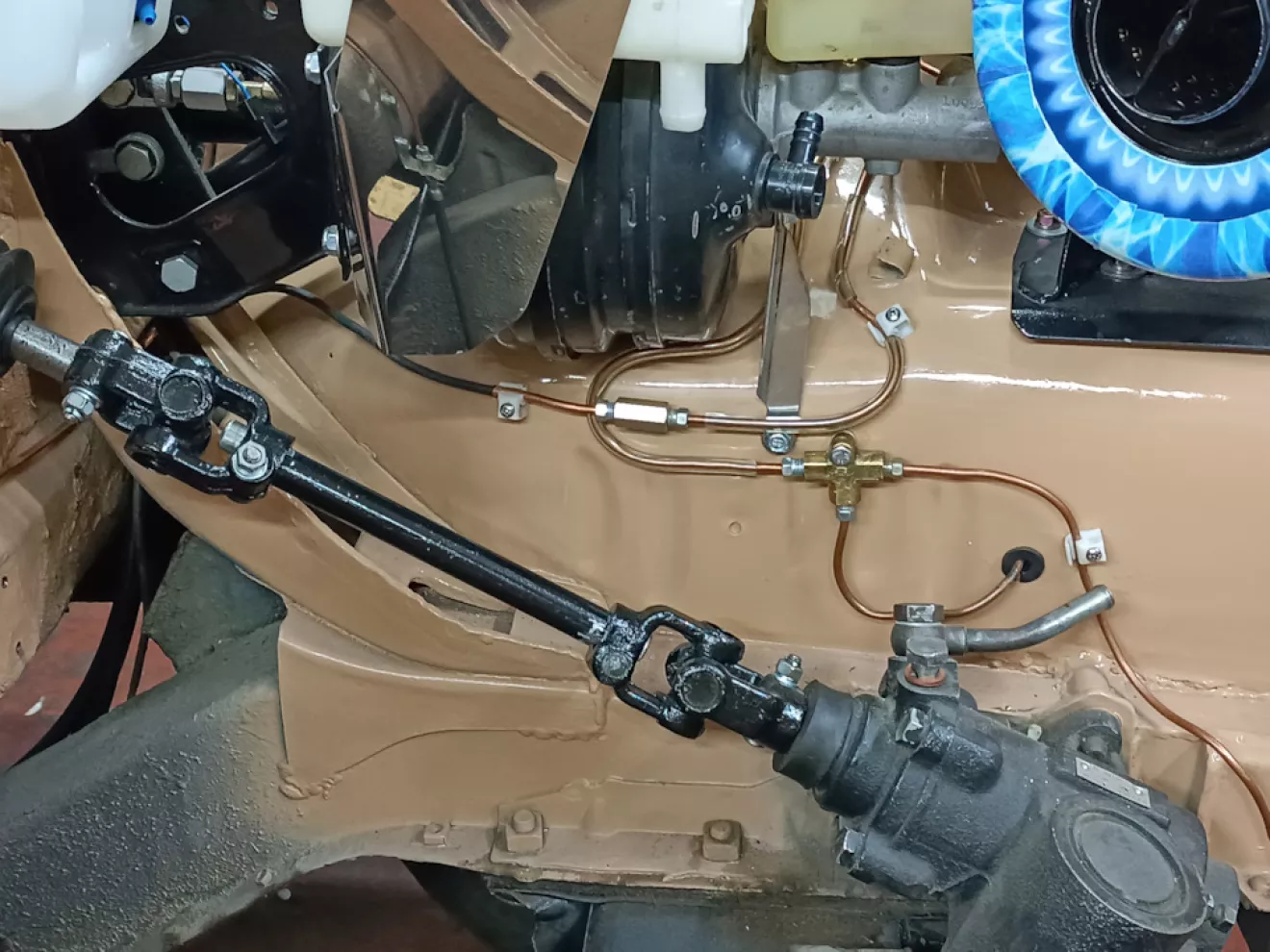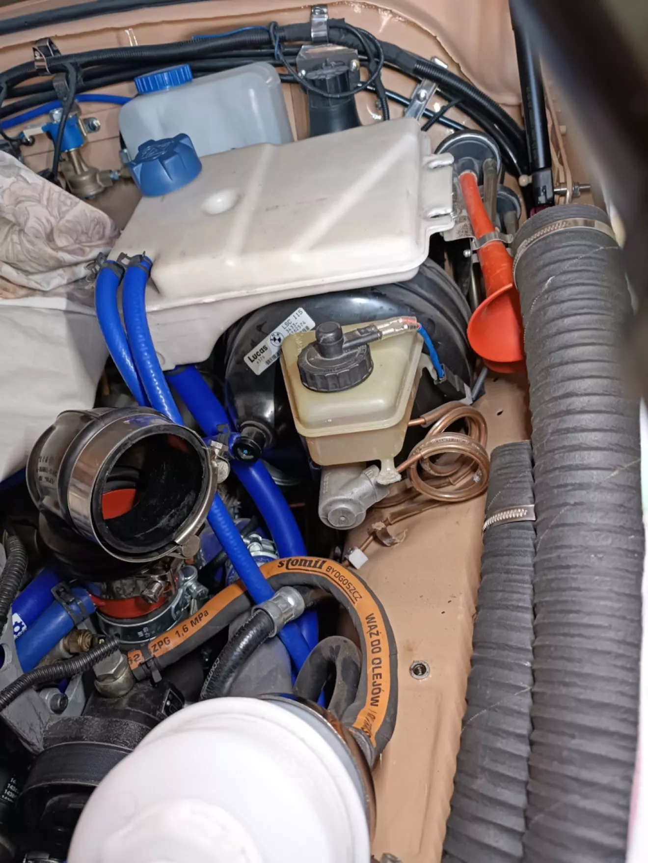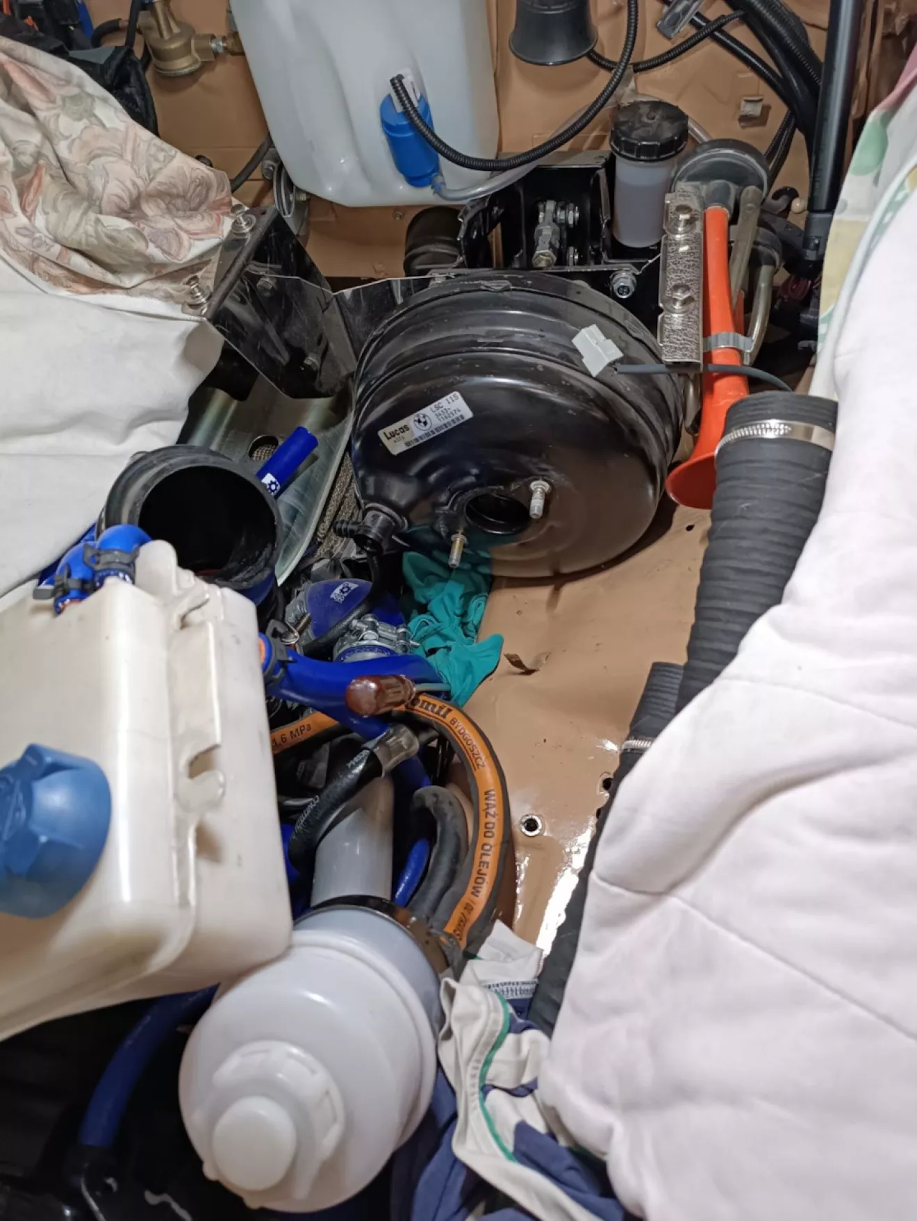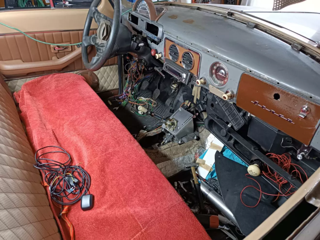 Сборку закончить не удается по разным причинам, она в последнее время местами приобретает отрицательный характер, но тактика очень малых шагов работает. Изменить конструкцию кулисы КПП Вольво при наличии диванов по месту и отсутствии сварщика превратилось в серьезный гемор по времени и физическим затратам. Небольшие напряги были с тормозами от Lukasa (BMW E34) — система была пуста и главный немного закис. Удовольствие разбирать тормозную систему очень небольшое, но к этому я был готов… Возможно я наклеил бы деколи на переднюю панель, если бы их нашел, но неожиданно нашлась им замена — Небольшие штрихи к завершению проекта.