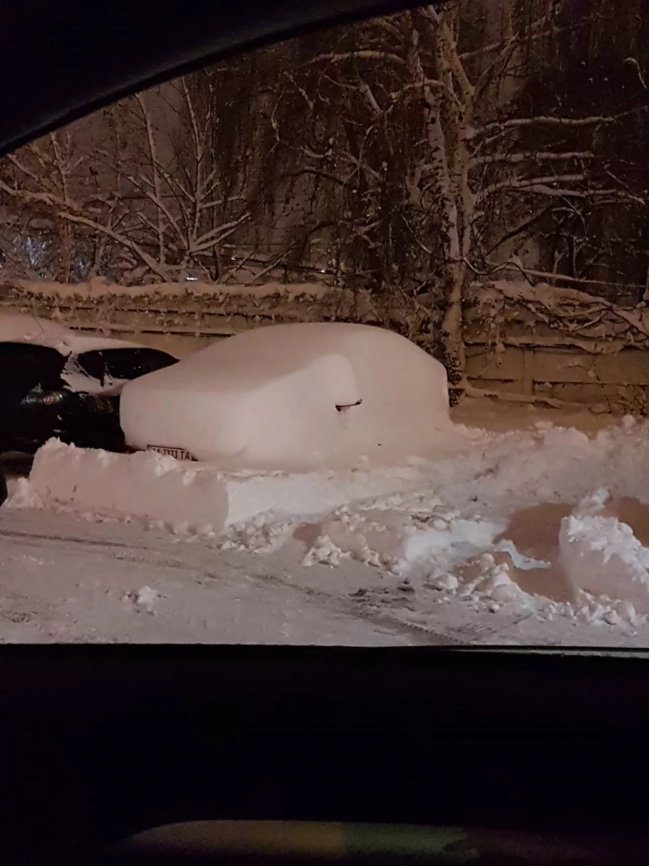 Неожиданно наступила зима. Манюня на стоянке.