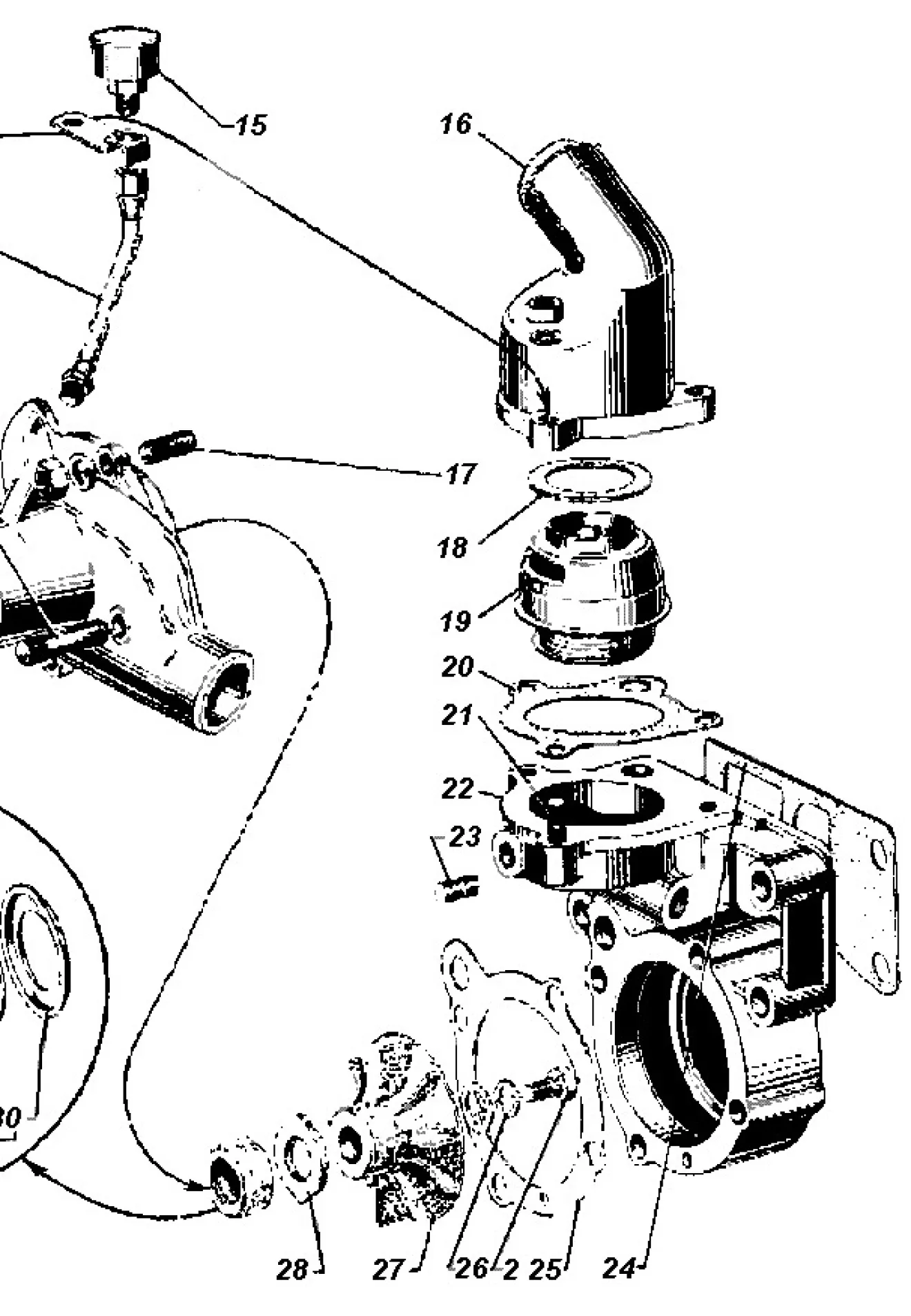 Ничего нового за исключением того, что нормальных запчастей на переборку практически нет. Валик помпы я так и не смог купить — нашел свой из закромов 30-летней выдержки ещё из армейских запасов. )) Патрубки тоже устали за 6 лет. Нижний подходит от гАЗ-53, а с верхним все та же проблема — не могу подобрать. Поставил какой-то от УАЗки (451), но все равно криво.