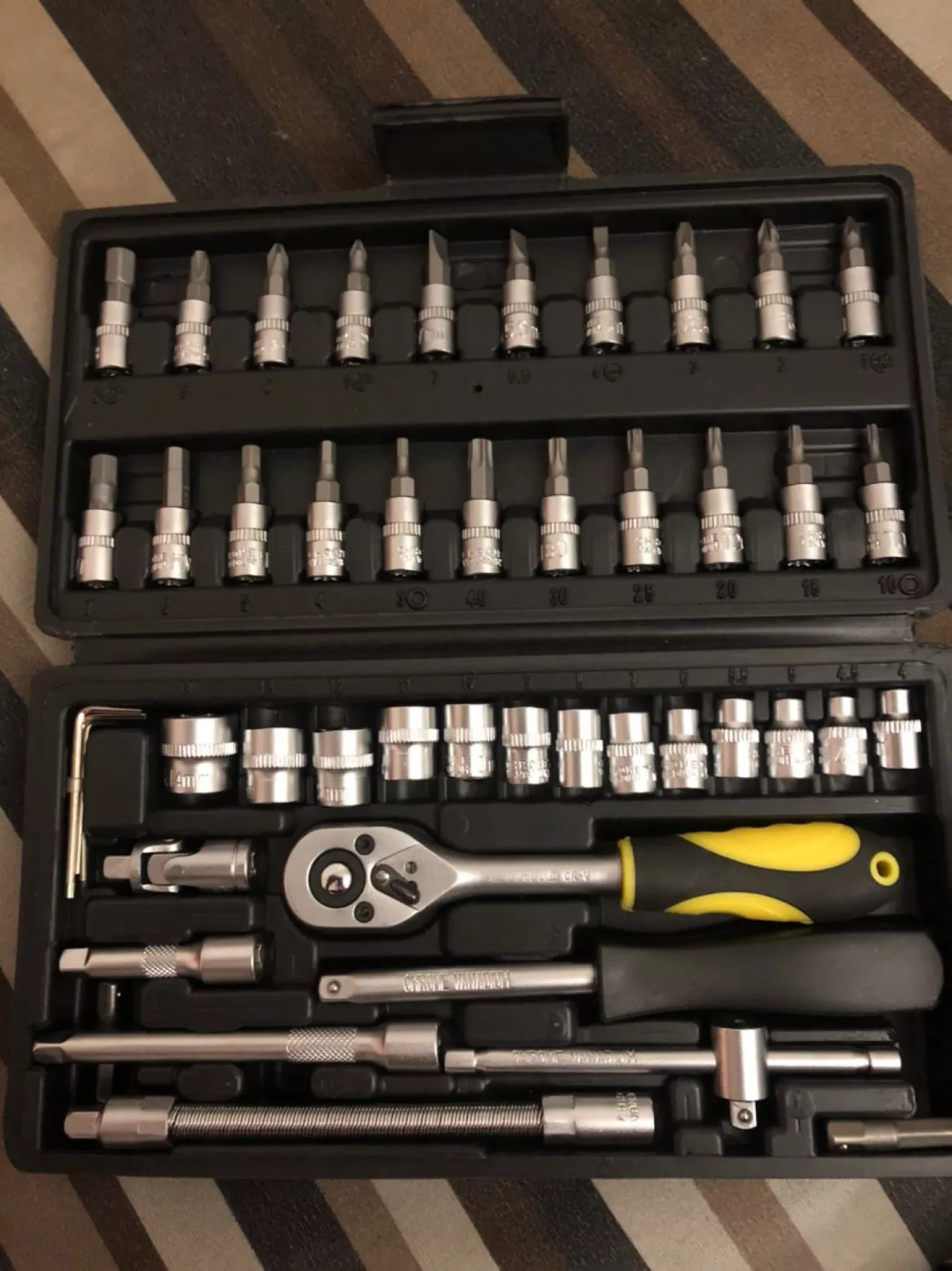 — небольшой набор инструментов "Сталь" для разбора салона и мелких деталей. Понравилось, что он не большой и его можно легко возить в багажнике.