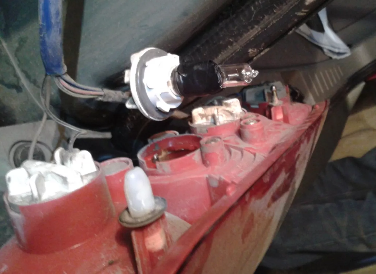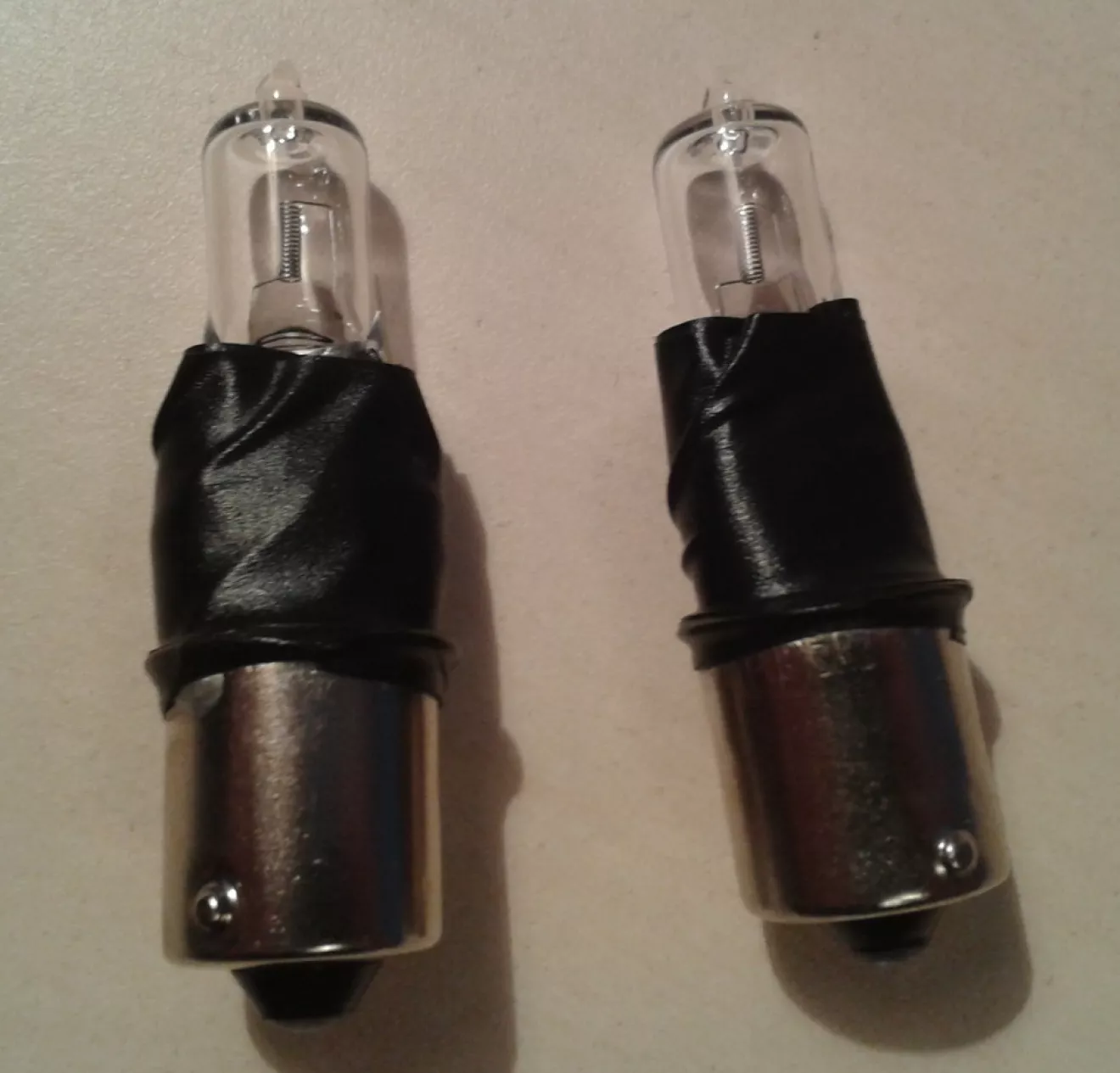 Колхоз начался: нашел у себя две лампочки с нужным цоколем, купил в строительном супермаркете OBI две галогенки на 12V и 50W и произвел фьюжин.