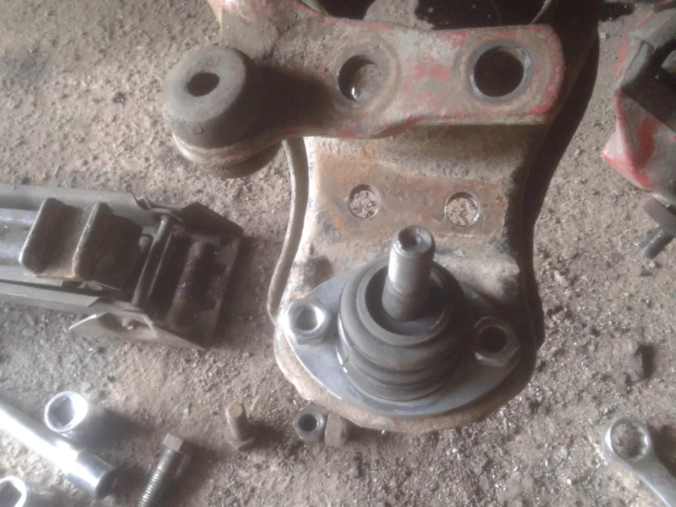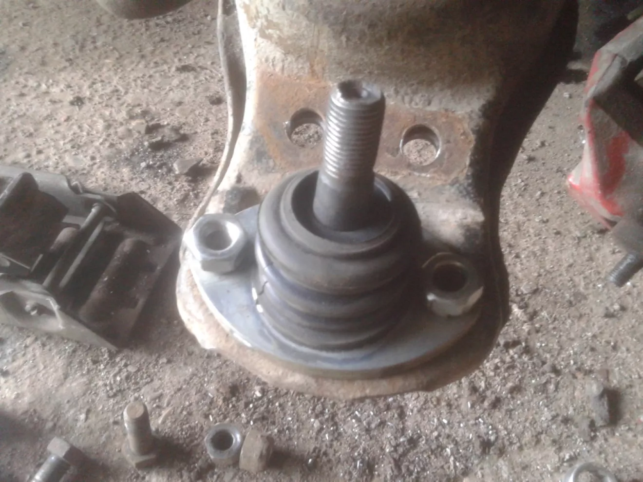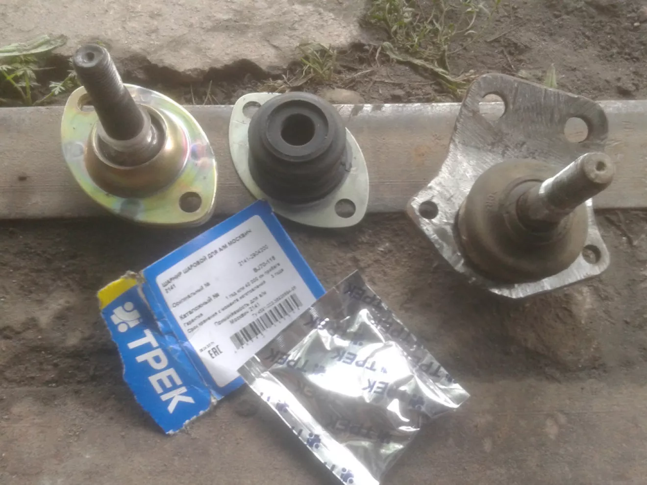 Вычитал, что можно поставить на тау вниз шаровую с Москвича 2141. Решил попробую и на своей, с чем чёрт не шутит))). Конус шаровых подходит, но под гайку просится шайба. Расстояние между отверстиями шаровой немного не сходятся, но я сверлом на 10,5 мм все исправил. Видел в интернете фото такого процесса — кто просто ставит на 2 болта, кто усиливает. Вообщем, Я сделал так => у родной шаровой срезал верх, снял палец шаровой с куском её же. Вытрусил сухарики и сделал посадочное место под шаровую 2141 старым остаточным зачистным кругом для болгарки. => Примерял шаровую 2141 к таунусовой, розсверлил отверстия и соответсвенно поставил болты на 10мм. диаметром. Смазал все и скрутил. Сегодня удалось с обеда поменять все 4 шаровых, резинки реактивных тяг, все втулки стабилизатора и тяг стабилизатора. Фото процесса по шаровой прилагаю. Удачных Вам Всем ремонтов и желательно, чтобы редких и мелких ))).