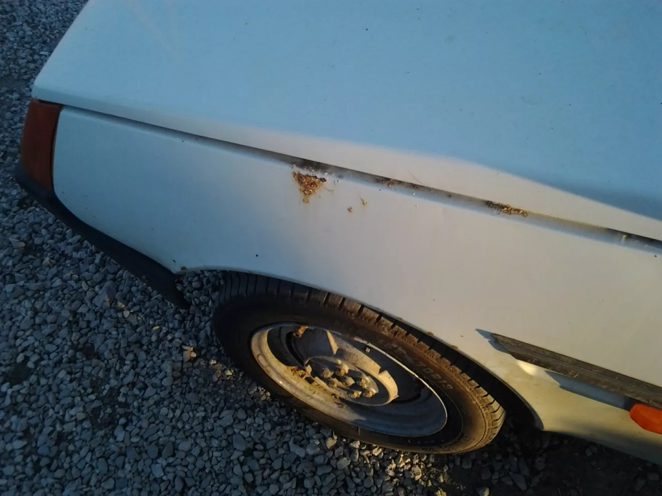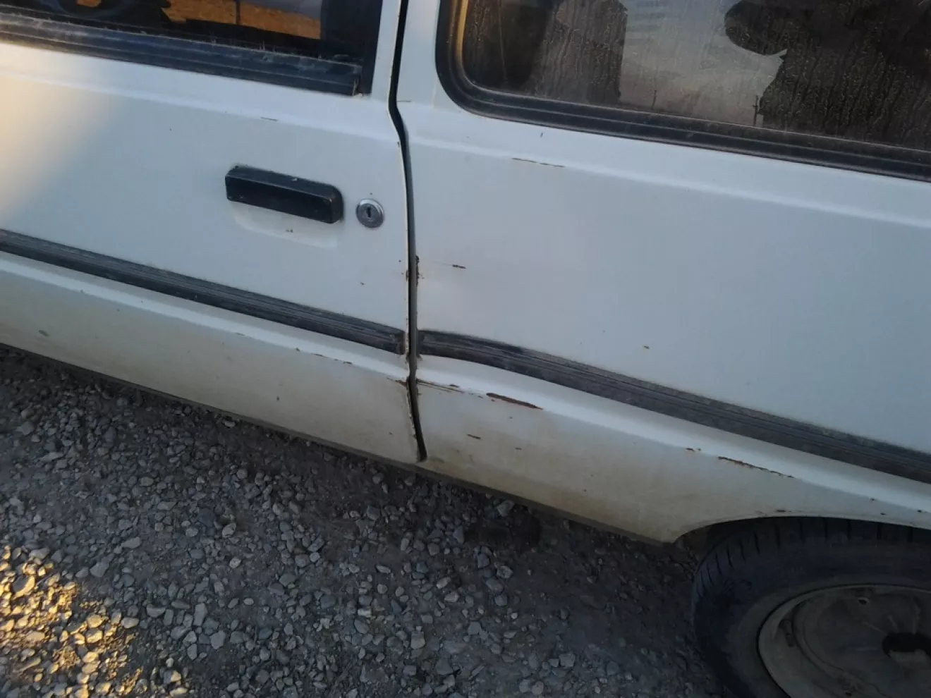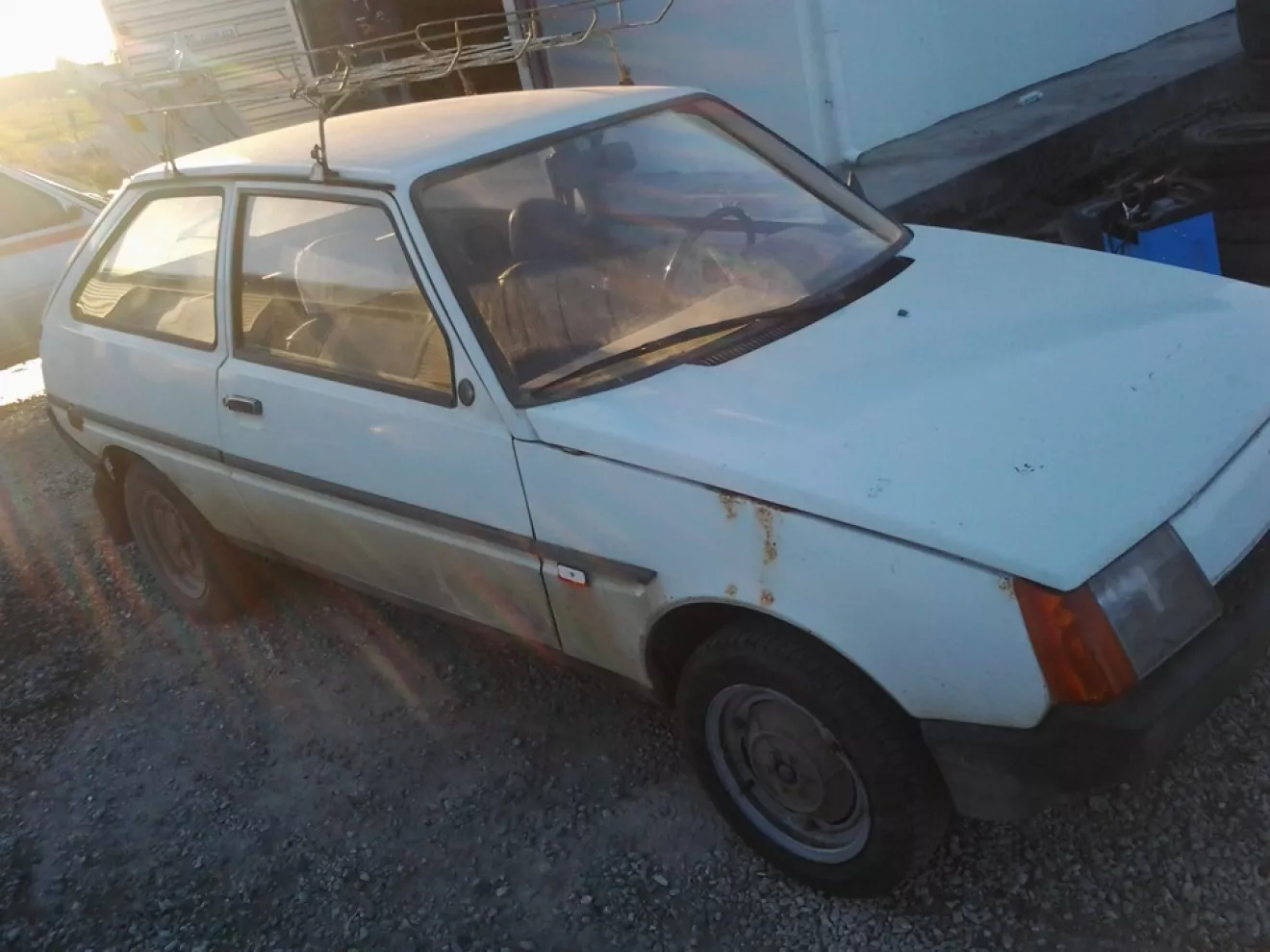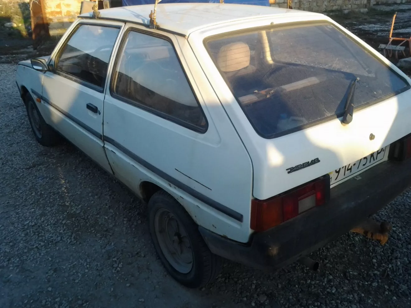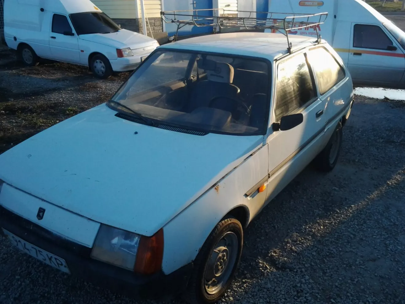 Таврия 1992 г.в. Белая, побитая годами и бывшим хозяином, вся в пыли на 1-ом накачаном и 3-х спущенных колёсах с огромных багажником на крышу, немного ржавых мест. Но в общем и целом я считаю — удачная покупка авто, за справедливую цену.