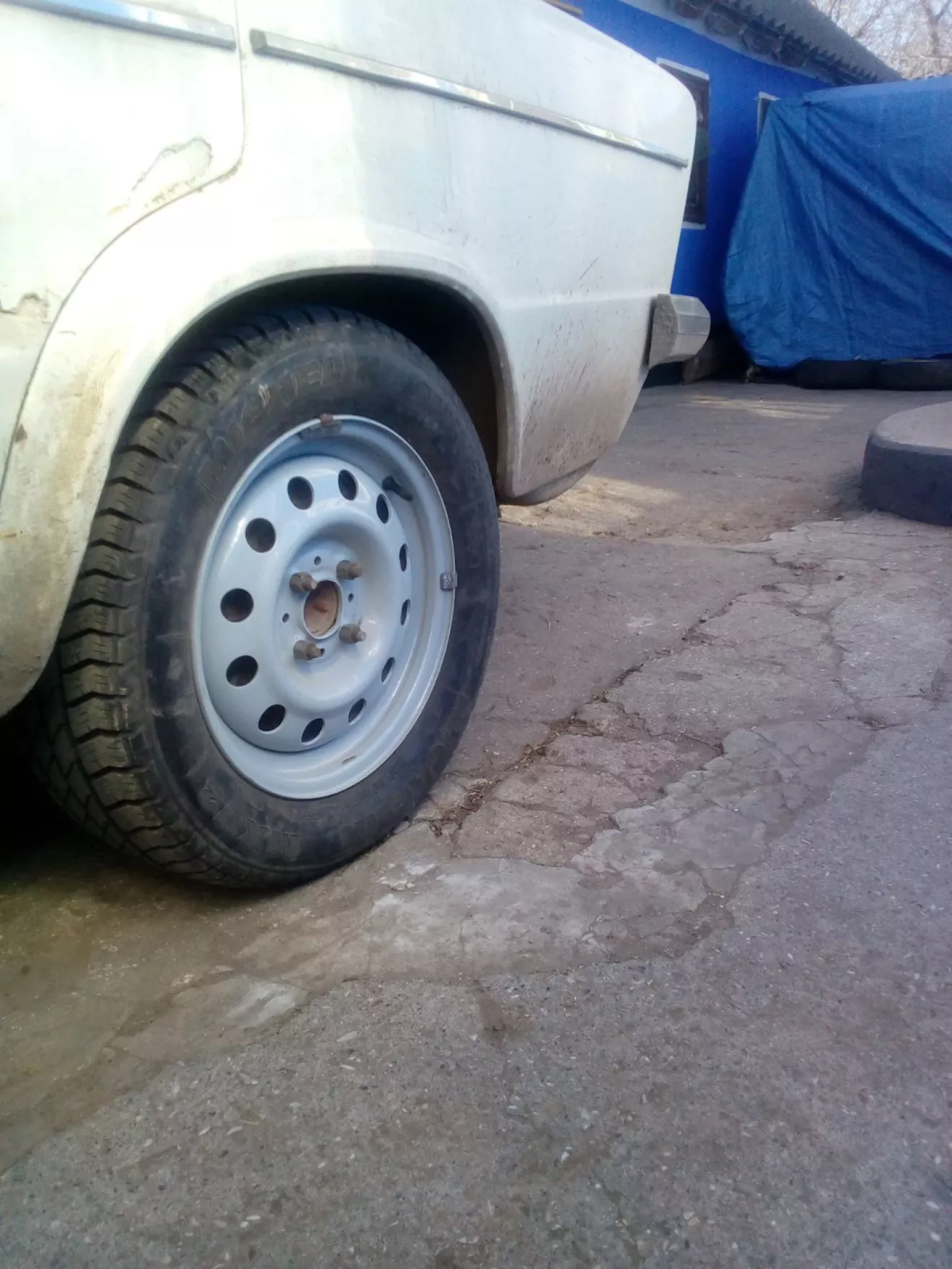 Переднее спущенное колесо с утра ускорило процесс "переобувки")))