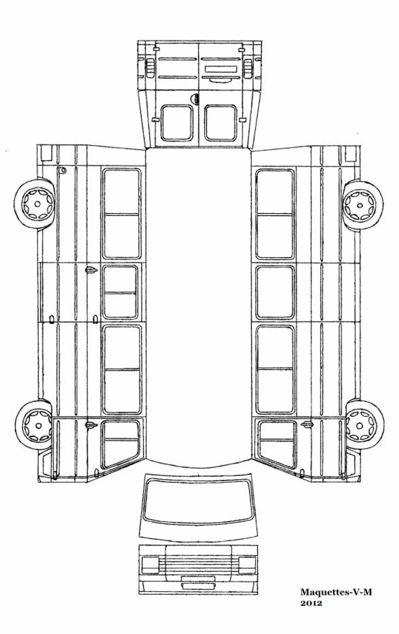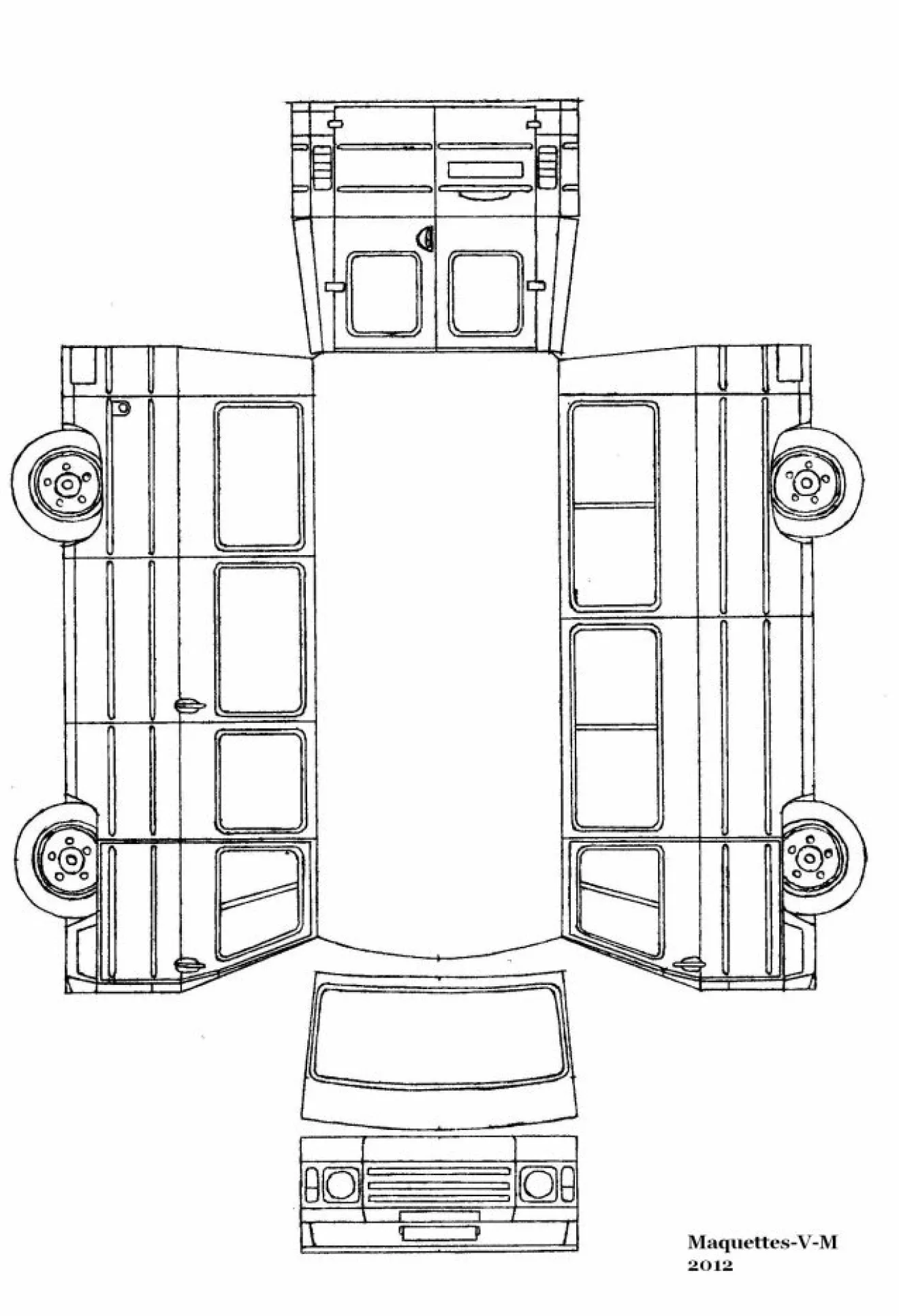 Любителям помастерить вместе с детьми: чертёж-разворот Пежо Карсан для изготовления модели из картона
