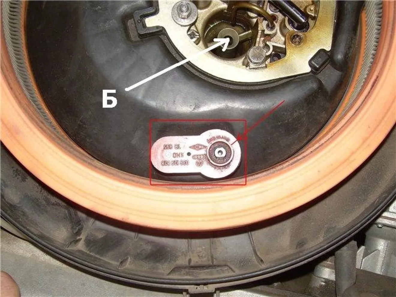 Привет всем! Знающие подскажите… Ни с того, ни с сего поднялись обороты двигателя на холостом ходу( тахометра нет, но стали ощутимо высокие) на прогретом двигателе. Автоматика подсоса в норме. Сняв воздухофильтра увидел, что поступает бензин во вторую камеру(заслонка естественно закрыта еще на этих оборотах) на фото показано белой стрелкой. Кто подскажет в чем причина и что сделать.