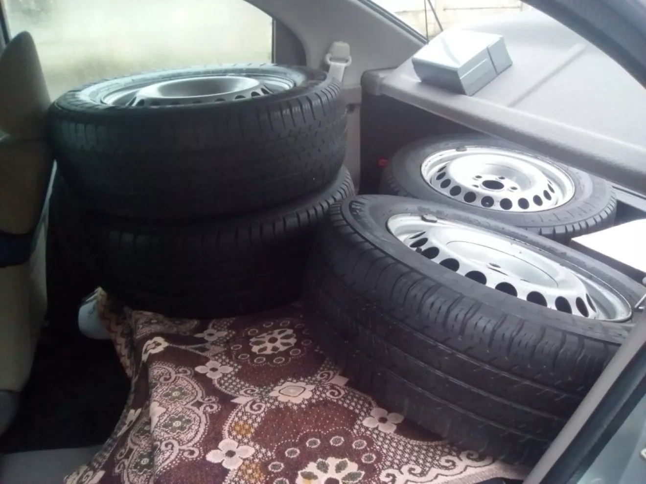 Сегодня пришлось мне проверить черика на грузоподемность) Купил я значит на тешку летнюю резину, а так как я от тешки за 600 км, то резину нужно было чем то доставить+ некоторые запчасти тоже для тешки) Колеги по работе даже подшучивали, что как в такую кроху можно положыть 4 r16 215x65? Но они чесно были удивлены когда я приехал с колесами на работу и показал что все влезло). Можно было все сложыть и в багажник, но во первых у нас сегодня был хорошый такой дождь, а во вторых хотелось проверить можно ли чтото возить при откинутой спинке заднего дивана. Результат на фото)