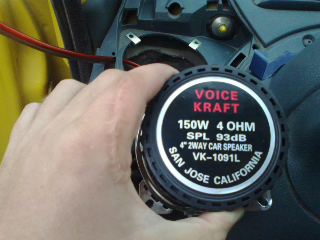С етим вопросом я и набрал номер знакомого, который подрабатывает в магазине разной електроники, в том числе и автомобильной. И чудо! мне говорят что колонки есть, хорошые, но одно но, они непонятной фирмы VOICE Craft и они разных цветов но для меня они пойдут по оптовой цене в 10 $ и кабель в подарок)