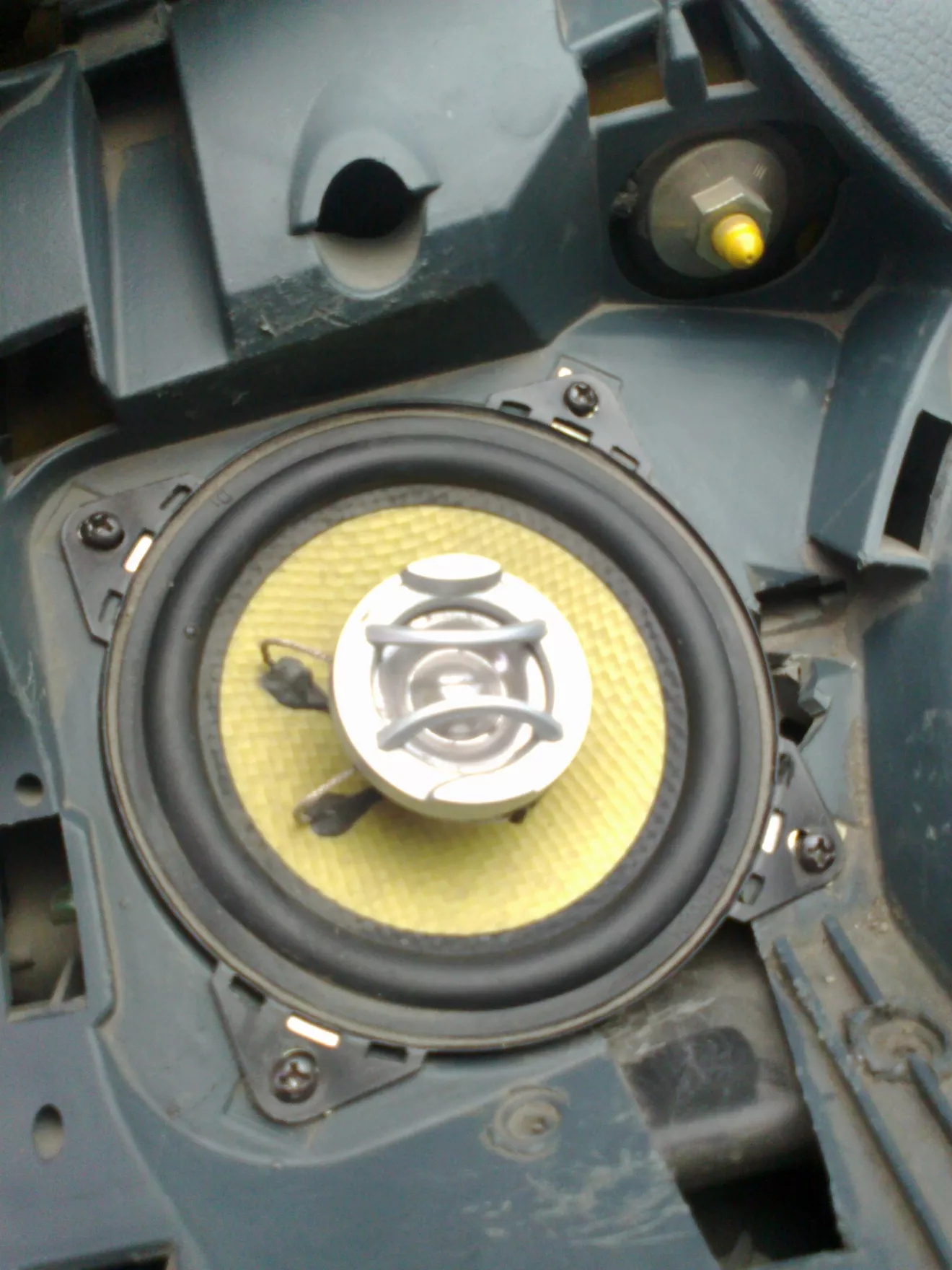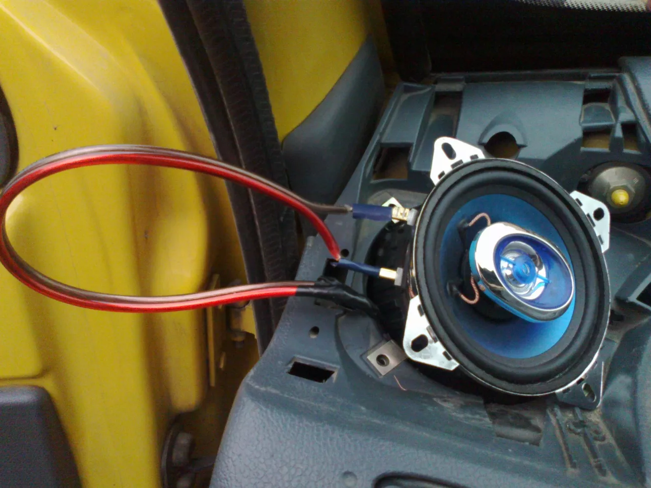 На следующий день когда уже приехал домой сразу начал устанавливать колонки. И первый шок был когда я увидел разницу между высотой динамика который уже стоит и высотой нового динамика, а она в пределах 3-5 см! но и ето меня не остановило, по новому подключил кабель от магнитофона к динамику и он ожыл! Звук намного лутше прошлого динамика. Но есть одно но, динамик не полностью становится на свое место, на 2 см он выше крепления, но плотно закреплен. Нужно под него делать кольцо для крепежа?