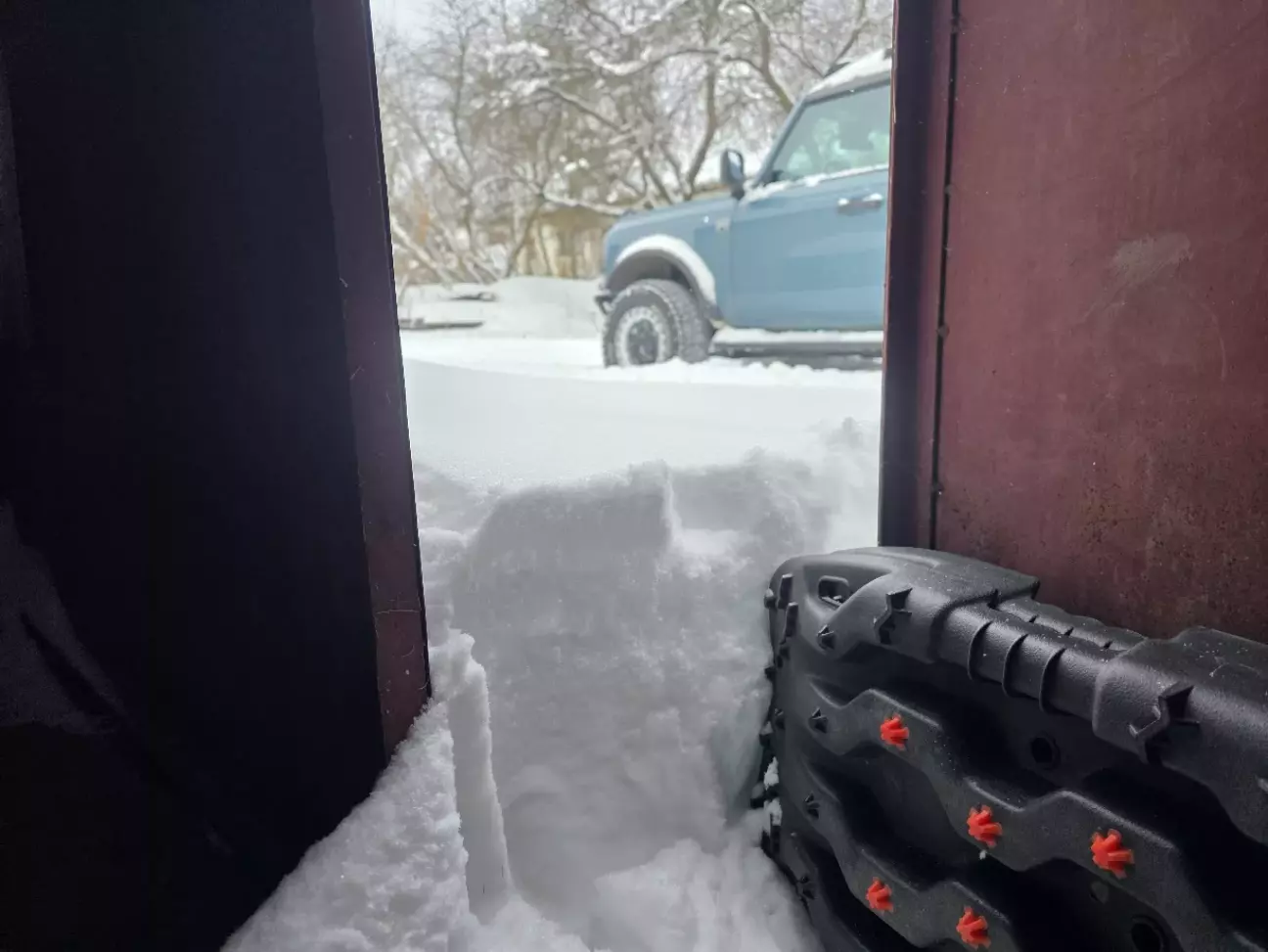 Думаю поїду я заберу в гараж сенд траки.Ну на всяк випадок. А гарах мій в полі майже))))звертаю з дороги))))і бачу що всі сусіди по гаражу поставили машини ну метрів за 600 . почав їхати і бачу посеред дороги фура складена стоїть, проїхав біля неї і відкривається краєвид де ніхто ще не їздив)))) Треба ж було трохи пробити дорогу,дуже впевнено машина себе вела,от просто офігенно,я навіть не газував ніде. Там є різкі повороти і різкий спуск вниз. Ніфіга страшного. Пробив колію і собі і хлопцям. Звісно двері в гараж заметені))))насилу відкрив трішки ,щоб залізти))))