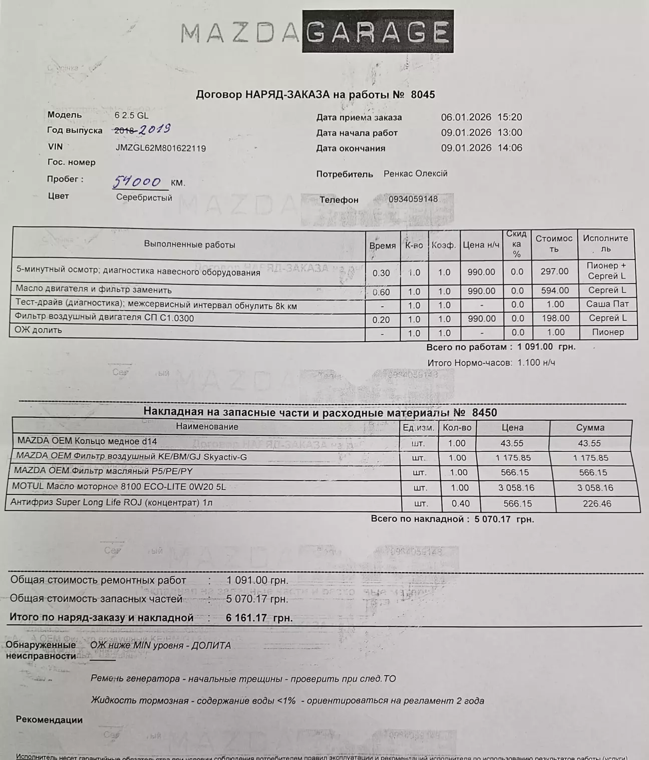 Робив на профільній СТО по маздам: Mazda Garag, підходом хлопців до роботи залишився задоволений.