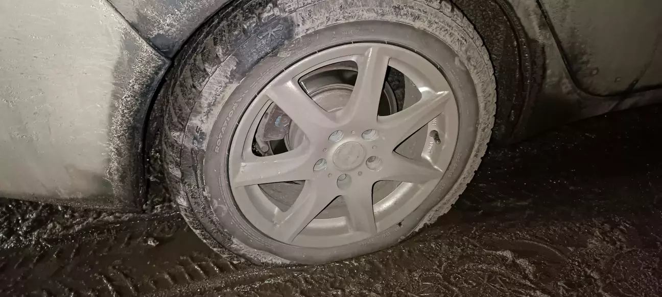 На наступний день мене прийняли лише на третій шиномонтажці, адже сипанув сніг, а місцеві вояки їздять в кінці грудня на настільки лисих шинах, що мені навіть влітку страшно було б на них їздити і відповідно черги як в Ашані перед новим роком. Прочекав 2 чи 3 години в черзі, майстер показав поріз довжиною 2-3 см всередині і біля 5 см ззовні покришки.