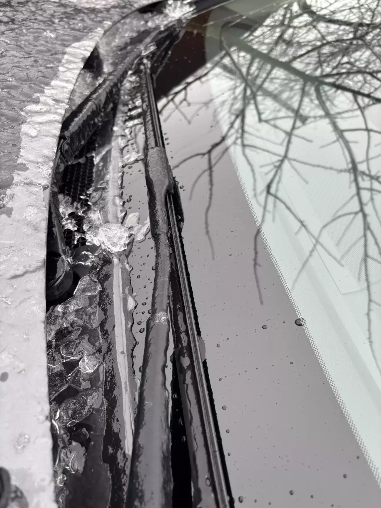 Хоч щітки і стояли в сервісному режимі і ніби криги на них не було, але все ж прихватило їх добре.