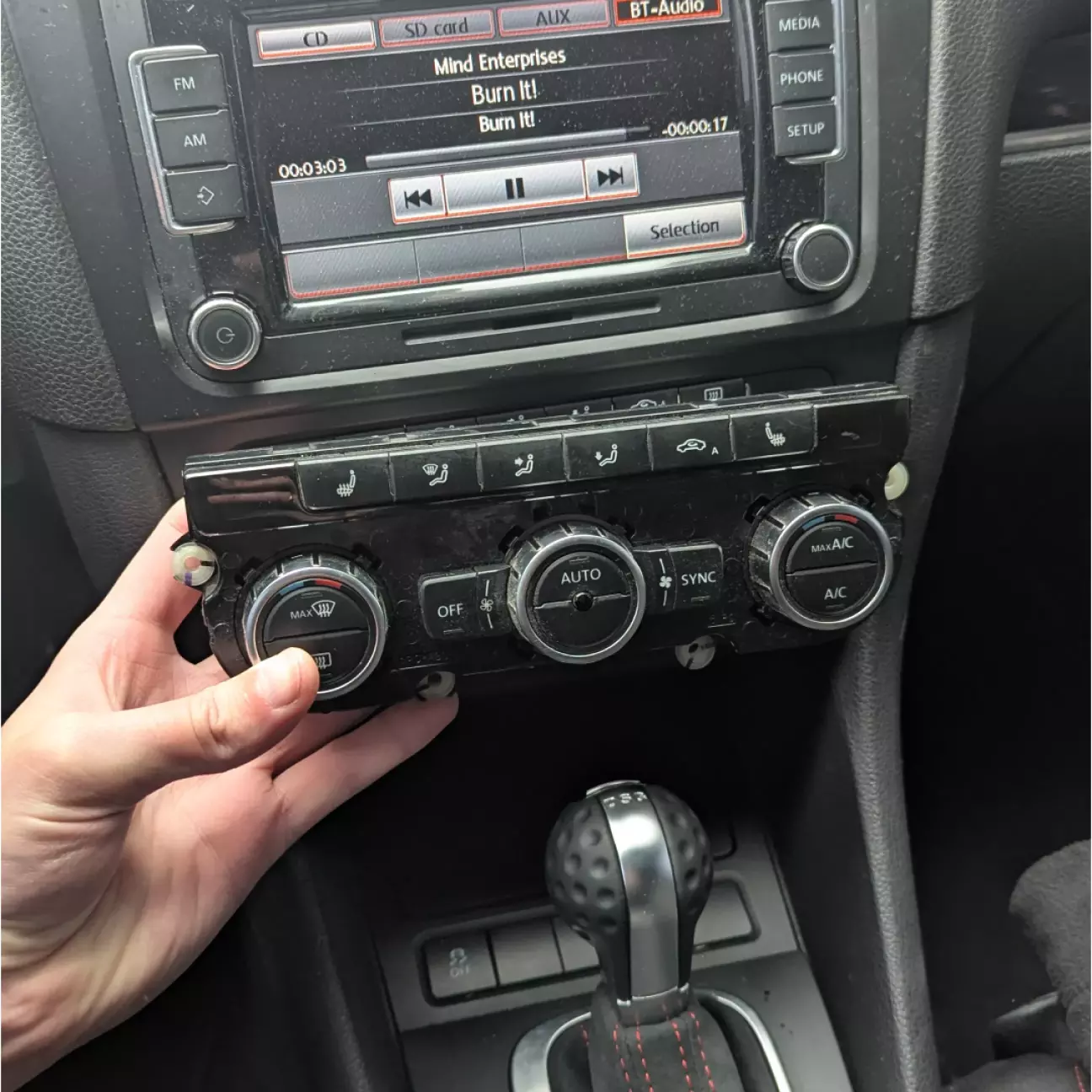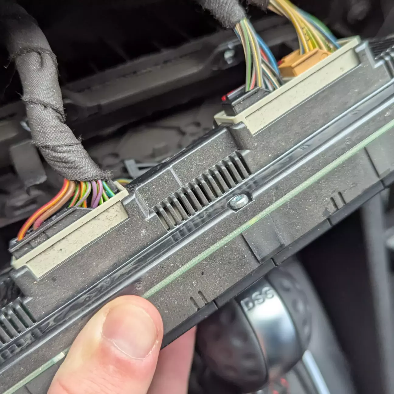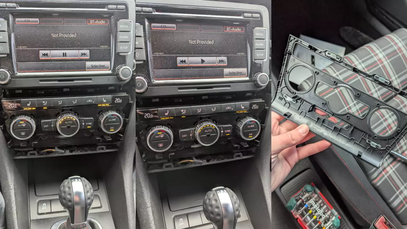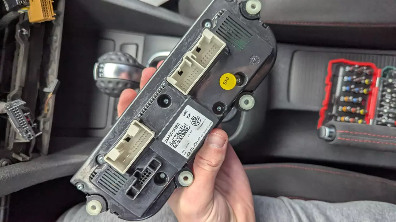 MQB-кліматів дуже багато, і тут почався квест. Потрібно було знайти червоний, цілий і без тріщин на екранах. Більшість БУ-варіантів, які я дивився, мали мікротріщини по краях дисплеїв. Це класична проблема через кривий демонтаж. Я передивився кілька штук, поки не знайшов живий блок. Трохи брудний, але цілий.