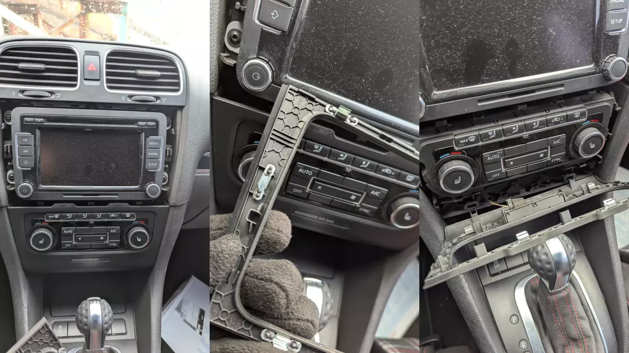 Рамку замовив нову, по коду. Сам блок шукав довше. По заміні все дуже просто. Знімається рамка магнітоли, потім нижня рамка клімату, відкручуються чотири гвинти, від’єднуються шлейфи і ставиться новий блок. Все plug&play, без кодування і доробок. Переплутати шлейфи неможливо.