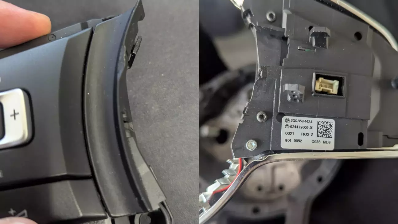 З кнопками історія окрема. MQB-кнопки напряму до PQ не підходять. Там або перехідники, або пайка, або колхоз із підрульовими блоками. Я навіть не починав у це занурюватися. Я знав, що існують PQ-кнопки, які стають у MQB-руль. Це кнопки від Jetta PQ. Вони працюють без кодування, без доробок, з рідніми блоками.
