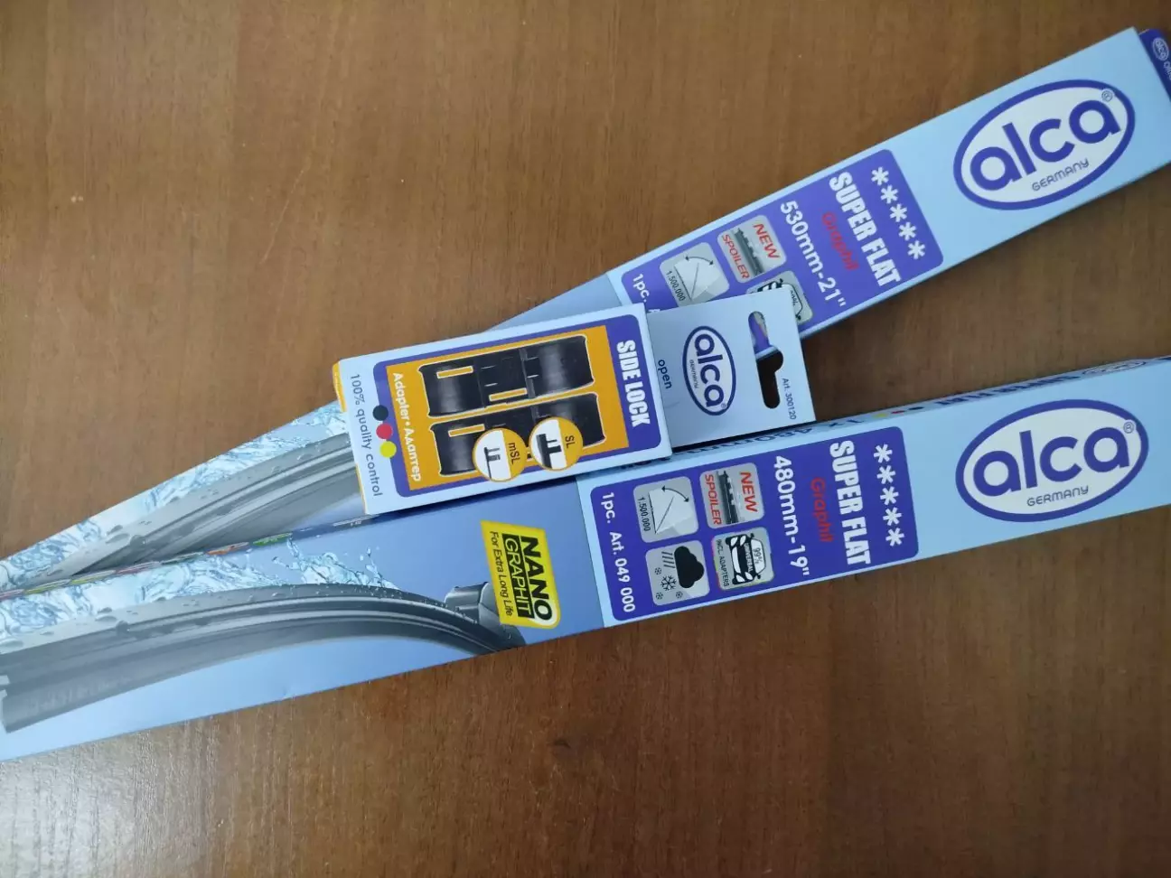 Щітки з коробки йдуть під кріплення типу "Гак", а в мене тримачі мають кріплення типу "Side Lock", тому додатково ще комплект адаптерів ALCA Side Lock 300 120.