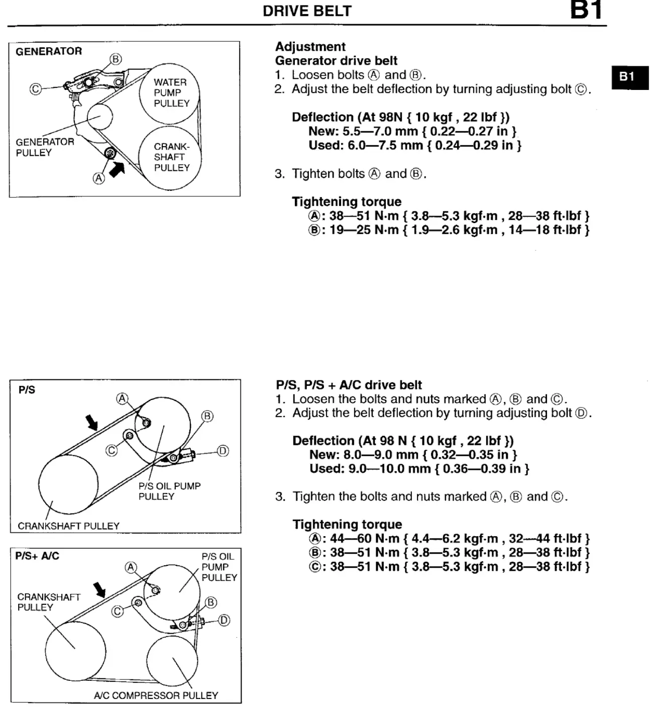 Для початку я хтів зняти ремені генератора та гуру. Так це два окремих ременя. І для того щоб добратись до ГРМ треба їх зняти. Тільки обов'язково перед тим продивіться які болти і куди крутити на іллюстрації вище, бо будете як я, крутити все, на*бетесь на сто дурних, потім відкриєте розумну книжку, і задовбані підете до дому з відчуттям як на фото у самому початку, але це ще не все що мене обурило. Для вас я в кратці поясню, бо не всі розуміють інгліш. Ітак! Для того щоб зняти ремінь генератора (верхній малюнок) треба віддати (не обов'язково повністю відкручувати) болти "А" та "В", а як початково задумувалось, віддавши болт "С" генератором ремінь отпуститься, але так як це все діло зачасту загавнякане та закисше, то можна просто максимально його викрутити та руцями заштовхати генератора, щоб послабити натяжку ременя та зняти його.