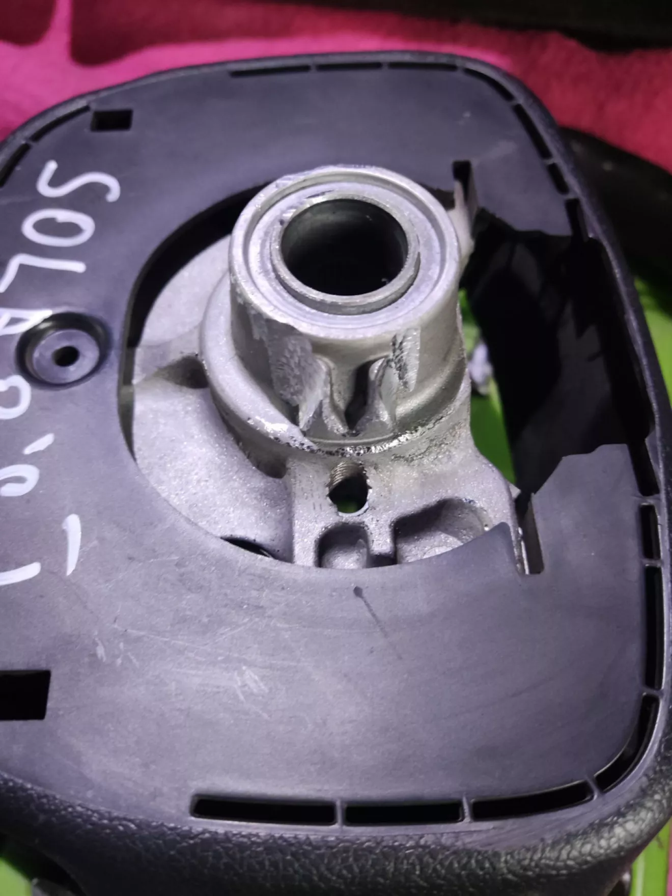 Позже был перепаян провод подушки Airbag, а так же микрики кнопок заранее заказаные с Aliexpress, подсветку кнопок оставил родную, мне такой цвет больше нравится, рамку зашкурил и покрасил в черный цвет. Когда красил первый слой — было все нормально, на втором получилась прикольная шагрень!