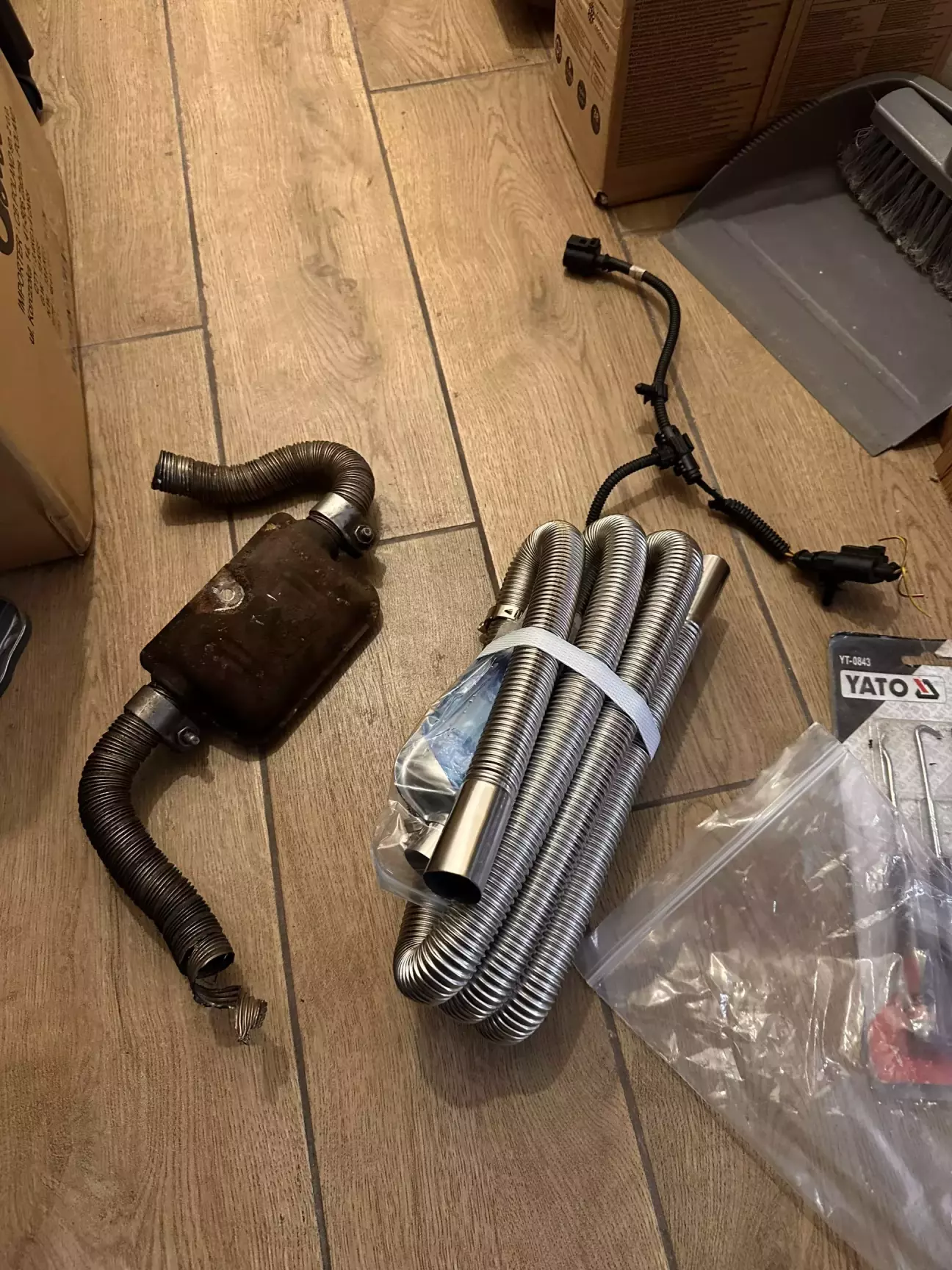 Далі я перейшов вже до збирання котла в купу,замовив трубу для вихлопа,а вона приїхала з глушником,десь бачив на ютубі що глушник не треба бо вона і так не голосно працює,але хай буде.