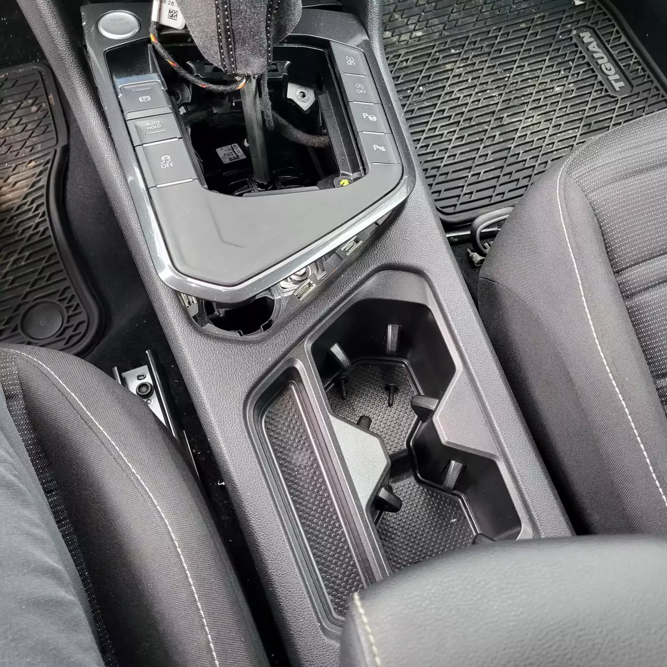 Також доречно що тут є в них ніша для підстаканників з шторкою. Як на мене виглядає приємніше. Ще бонусом було те що є місце під встановлення беспровідної зарядки бо на скільки мені знайомо то не на всіх таких підлокітниках є це місце, буває і глухе. Отже не довелося пиляти там отвір)