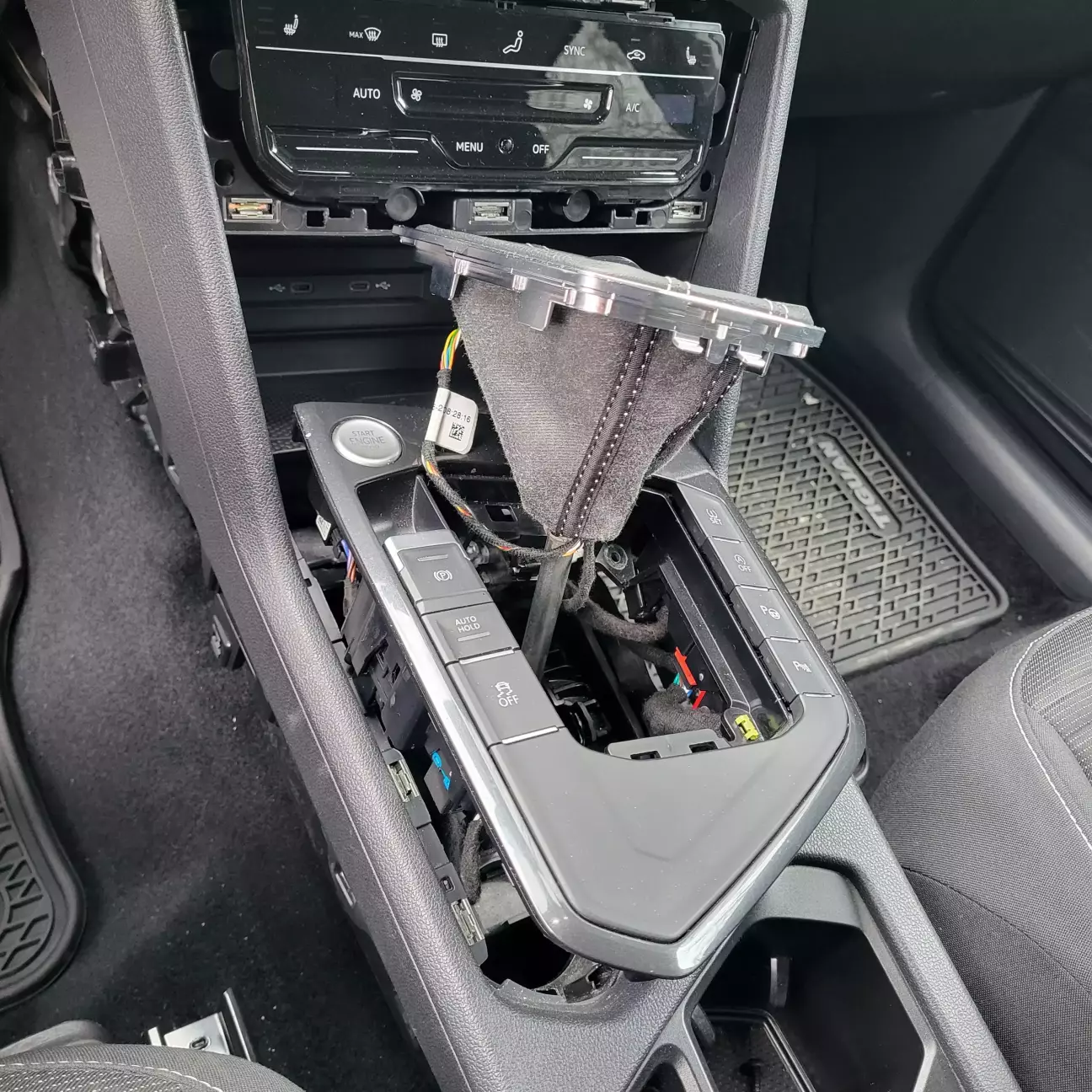 Усього начебто 12 метизів. Все відкручуємо переводимо ричаг акп на положення D (є там жовтий нажимний фіксатор щоб перевести ричаг без запалення) трохи ссуваємо його назад та витягуємо. Далі треба переставити передній роз'єм USB в новий підлокітник і встановлюємо все в зворотньому порядку.