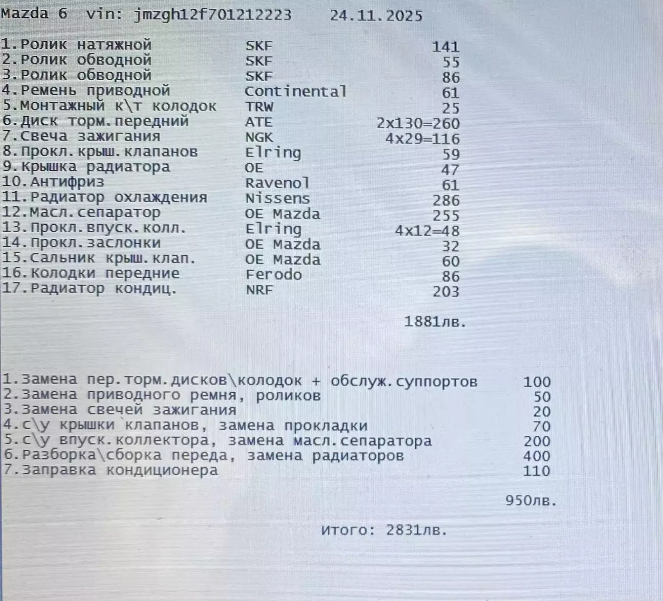 - Заміна основного радіатора (така сама модель) та радіатора кондиціонера + заправка кондиціонера.