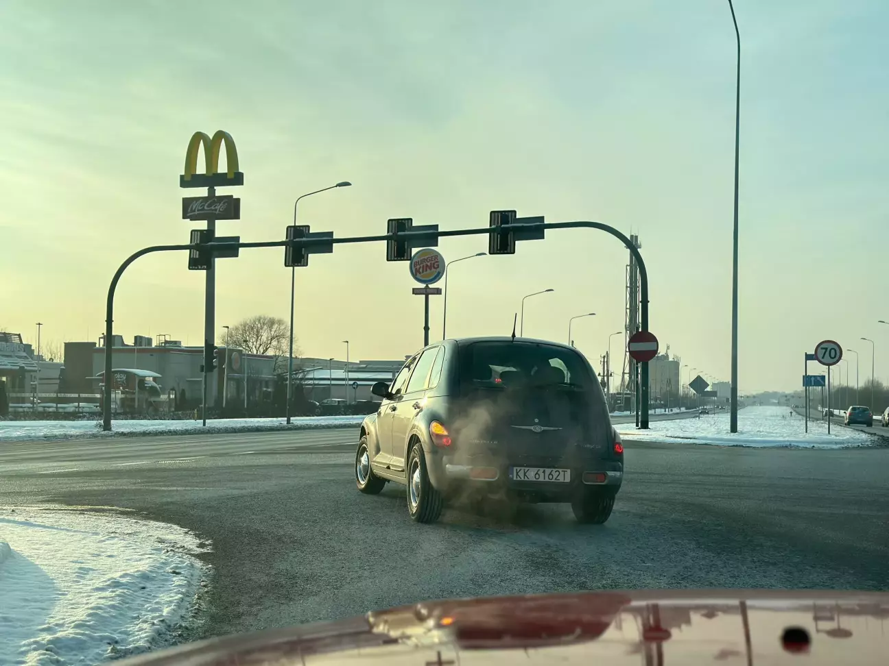 Стели McDonald’s та Burger King, вид з Мустанга на тачку ніби з 30-х, загальний вайб… Якби в Кракові знімали низькобюджетне кіно з подіями, що відбуваються десь у Мінесоті (на кшталт якогось польського «Фарго»), то це міг би бути кадр звідти.