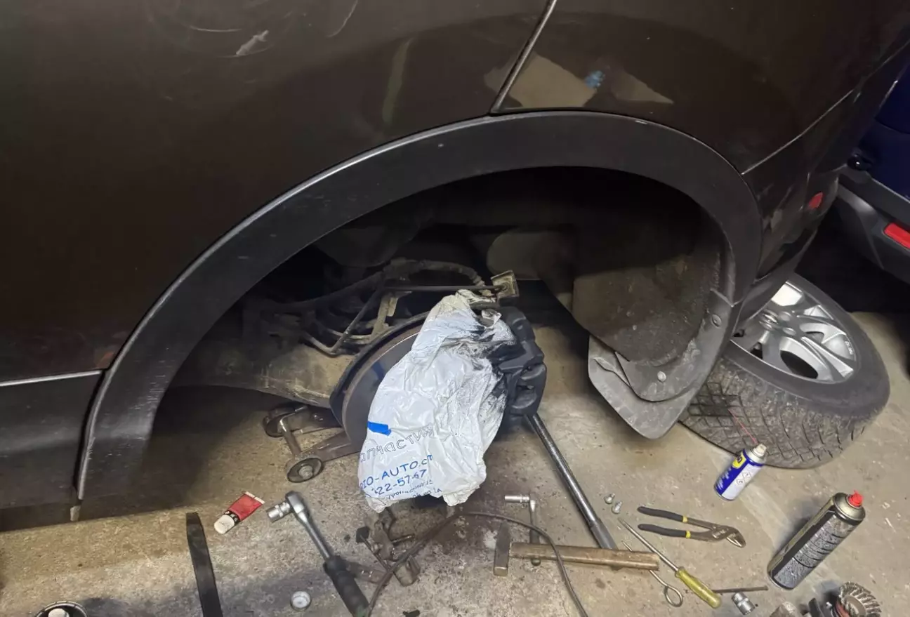 Під час ревізії з’ясувалося, що на задніх гальмах пошкоджені пильники поршнів супорта.