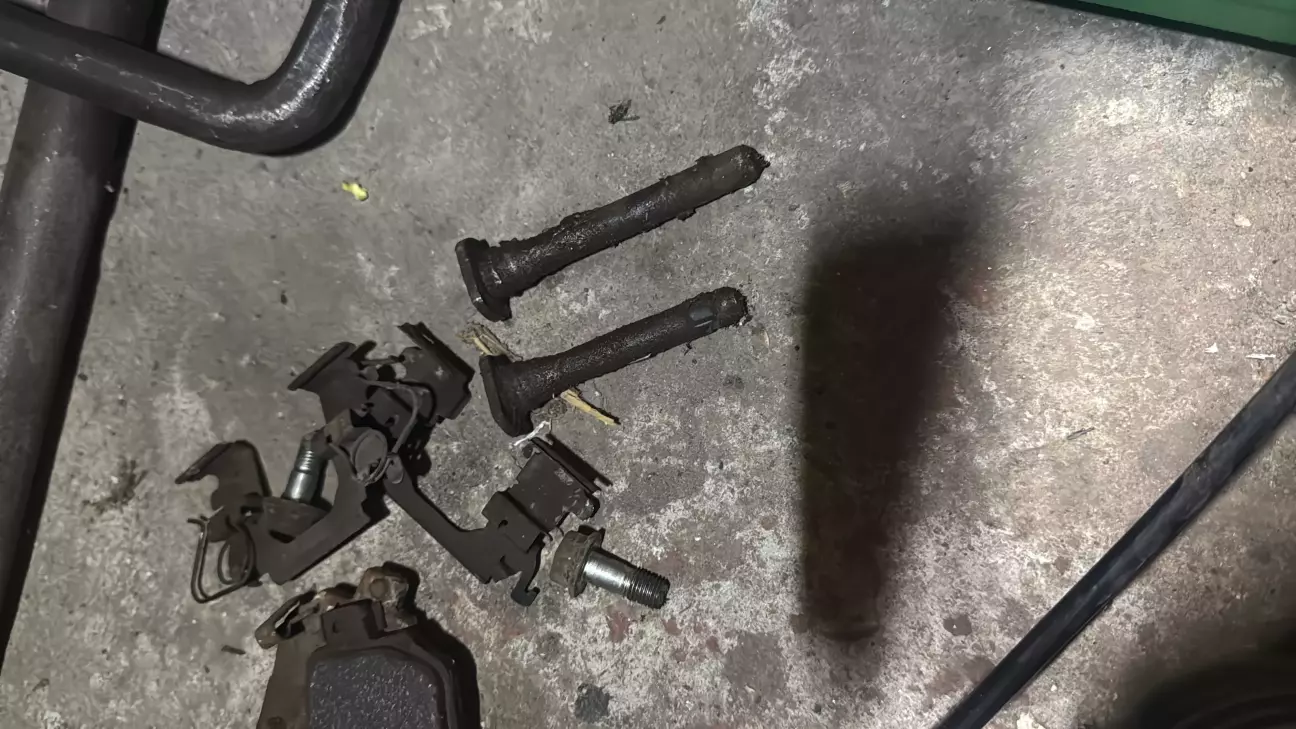 У даній конструкції притискні пружинки є єдиним цілим із задніми гальмівними колодками, тому прийняв рішення замовити нові задні колодки. На передніх гальмах пружинки також потребували заміни. Про всяк випадок вирішив додатково замовити ремкомплект направляючих переднього супорта — як згодом виявилося, не даремно.