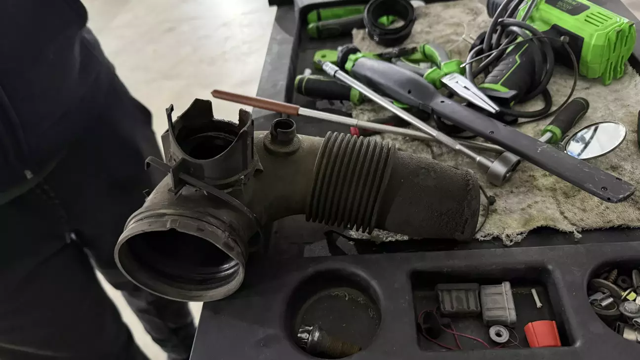 Ну а после поездки планировалась замена масла с фильтрами и осмотр после поездки. Подъемник показал, с пассажирской стороны случилась ровно та же ситуация что и была летом с водительской, а именно порвался пыльник привода и часть смазки разбрызгало, но это что называется "малой кровью". Меняем, набиваем новую смазку, ставим новый сальник, а также выполняем то что планировалось - замена приводного ремня с натяжителем, уже в работе добавился ещё один пункт, пластиковый патрубок на турбину рассохся и отломался, благо это всё расходники и в наличии всё было.