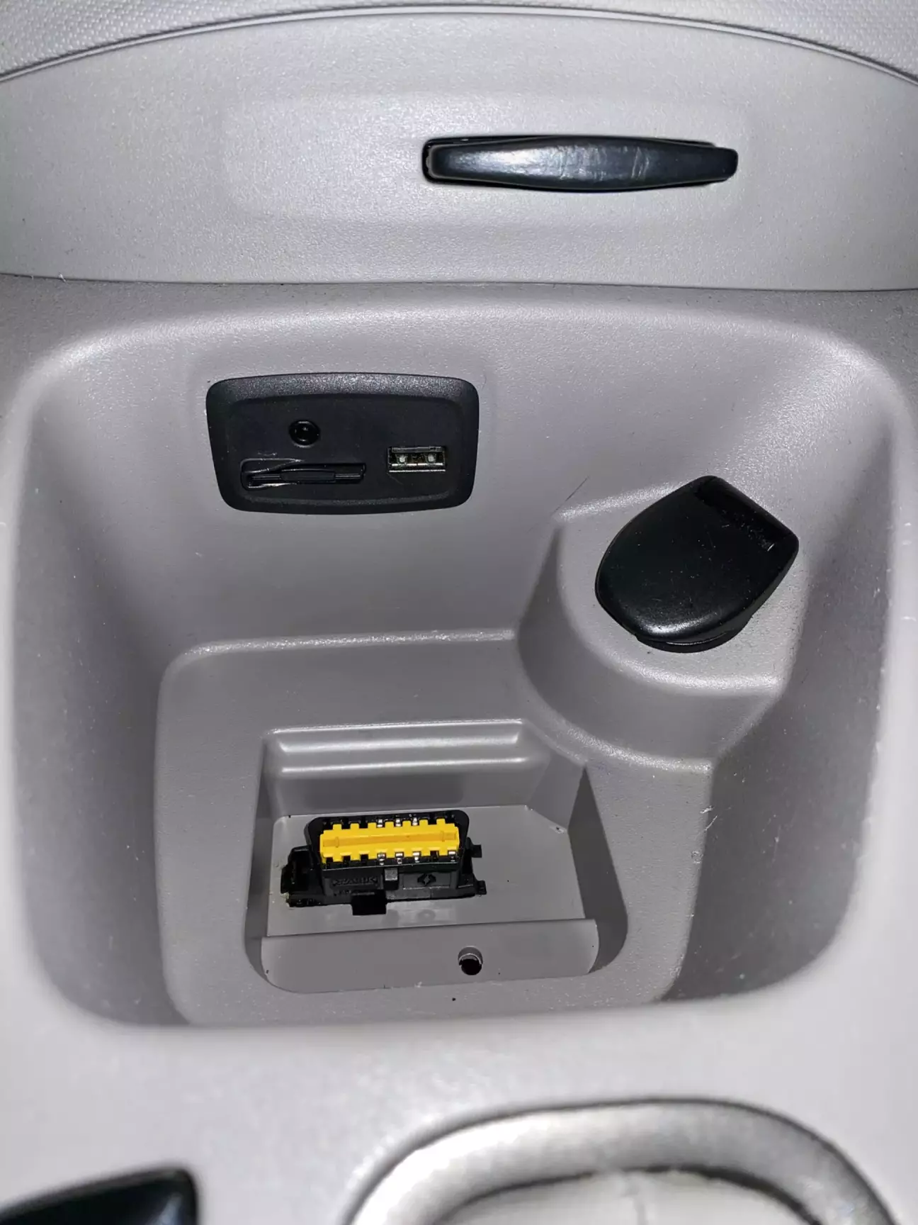 Спочатку необхідно вставити ключ-карту в її місце, щоб авто бачило ключ і коректно сприймало зміни, що його очікуватимуть. Після цього, зняти захисну гумову поличку, щоб був доступ до OBD порту авто.