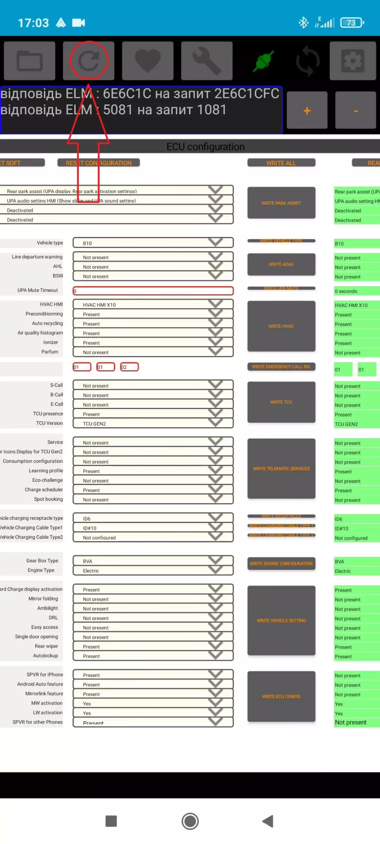 та натиснув сіру кнопку WRITE ECU CONFIG, що знаходиться правіше.