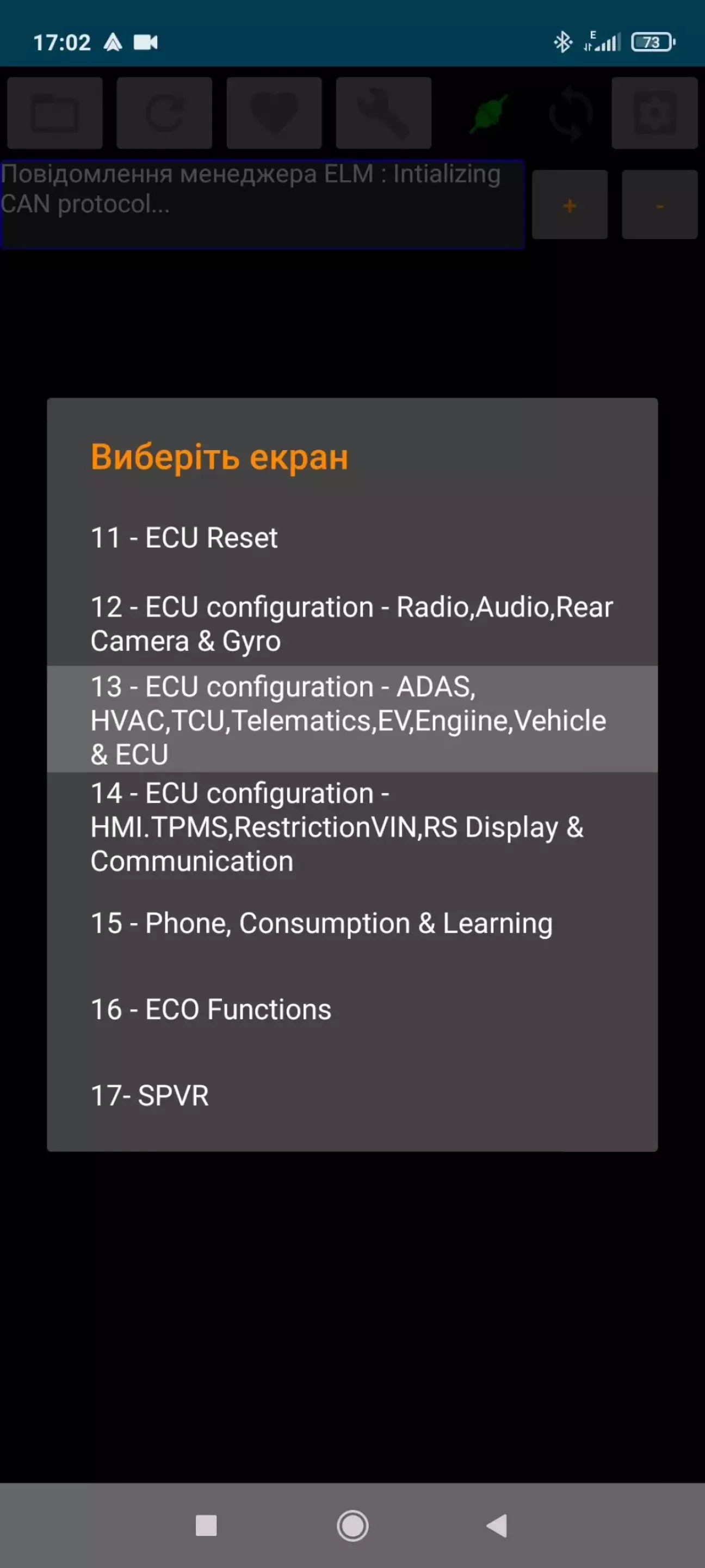На телефоні потрібно увімкнути Bluetooth та зєднати з ELM адаптером.