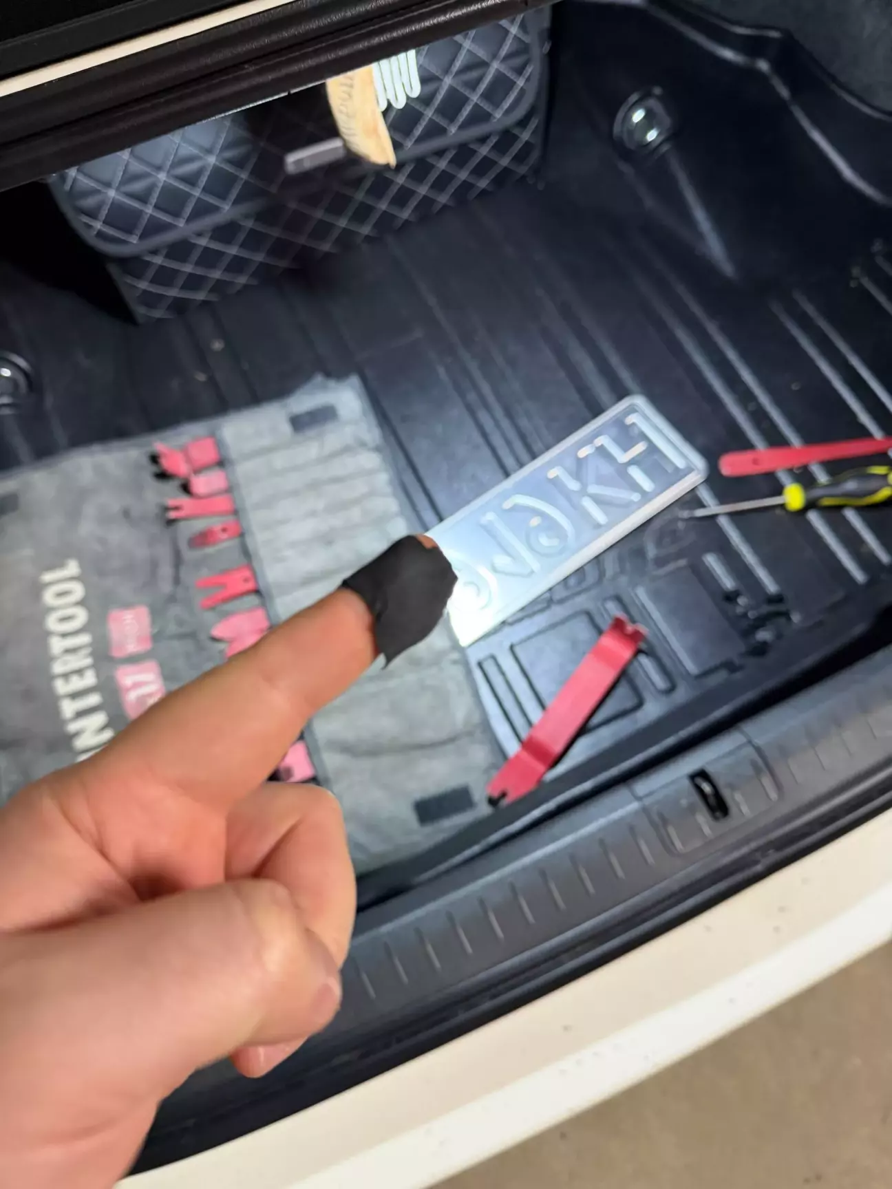 Порада, щоб зняти планку і не обламати кліпси і кріплення на самій планці, обов'язково штовхайте кліпси зсередини багажника, і трохи ззовні тягніть планку на себе, я для цього використовував палець і монетку, примотану до нього😂