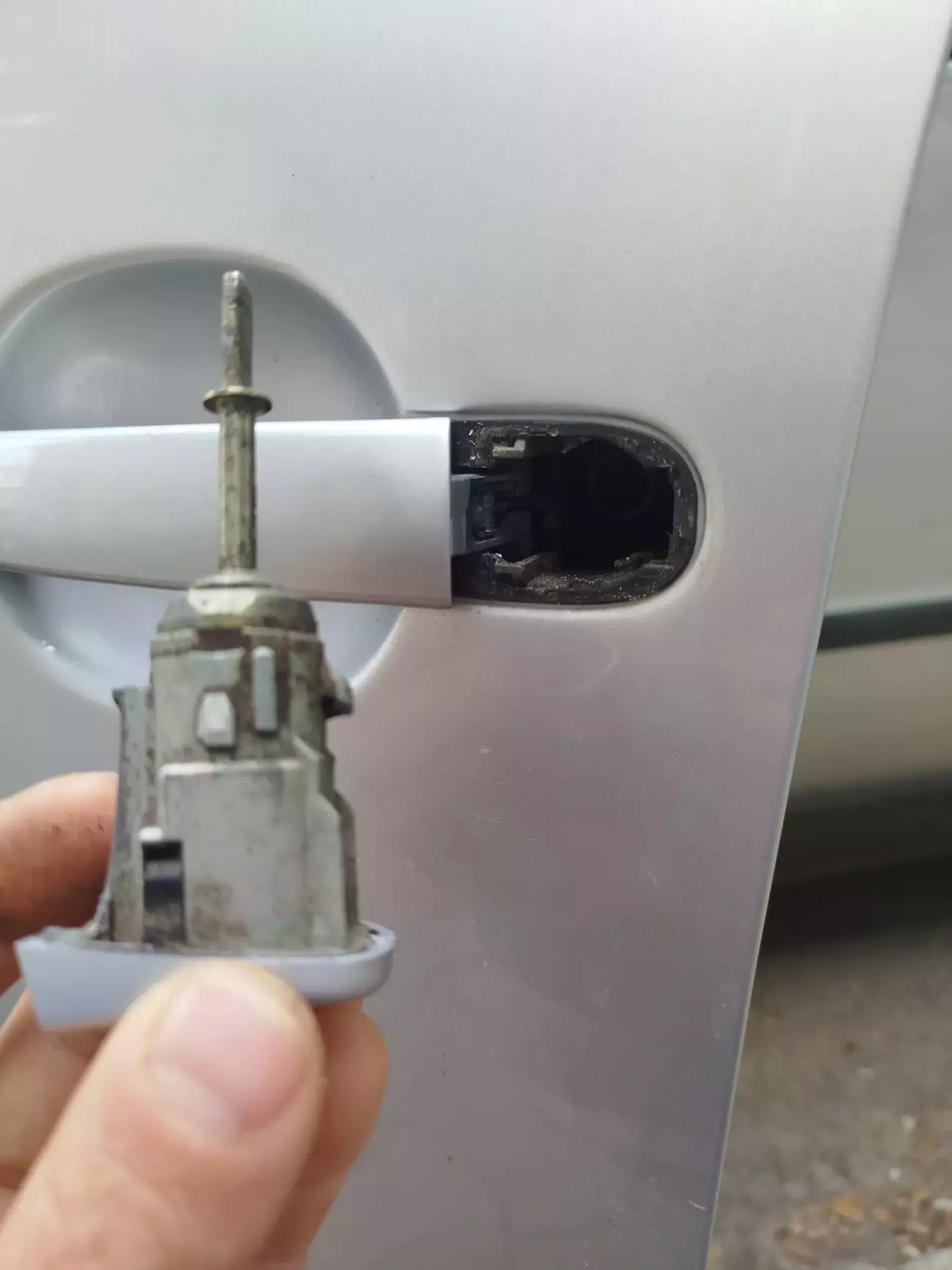 Запис "міні прикрість" сталася з ручкою відкриття задньої дверки. Після ночі міцного морозу, примерз ущільнювач, а я лінуючись відкрити дверку з середини, смикнув сильніше за ручку. Ну і в результаті трохи витягнув. На благо нічого не зламав, але вигляд ручки, яка відійшла на декілька міліметрів, око не радує. Ремонт не складний і зайняв декілька хвилин. Знімається пластикова заглушка і зірочкою відкручується болтик, до того моменту, коли личинка замка не витягнеться. До кінця викручувати гвинт не потрібно.
