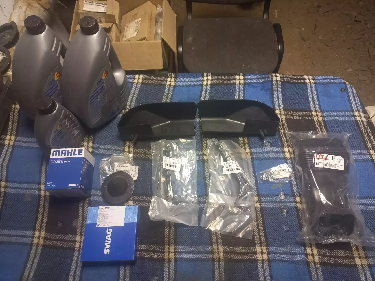бічні повітропроводи у верхню решітку бампера, бічні кронштейни кріплення переднього бампера до крил, фіксатор передніх гальмівних трубок, повітропровід повітряного фільтру, нижня опора задньої пружини та підвісний підшипник. Також вже прийшов час для заміни мастила - це, як завжди, Q8 5W40 та комплект фільтру MAHLE.
