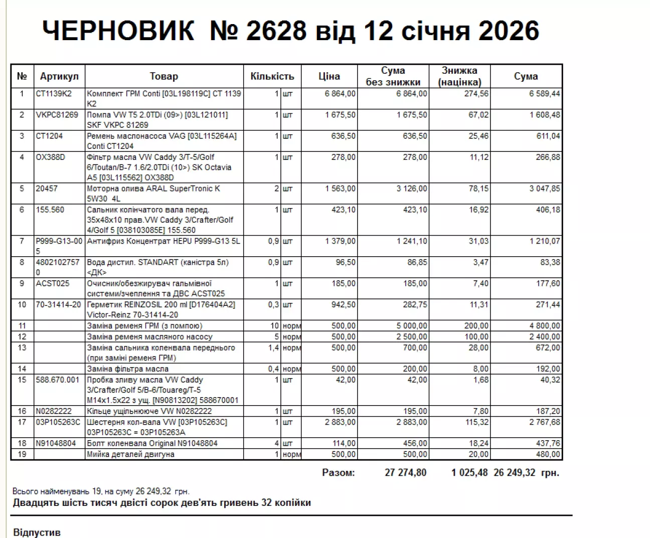 Вітаю Всіх присутніх, підійшов час заміни Оливи на Т5tuchi, тому було прийнято рішення комплексно замінити комплект ГРМ та як пробіг старого майже 70 000км. Заміну проводили на СТО.