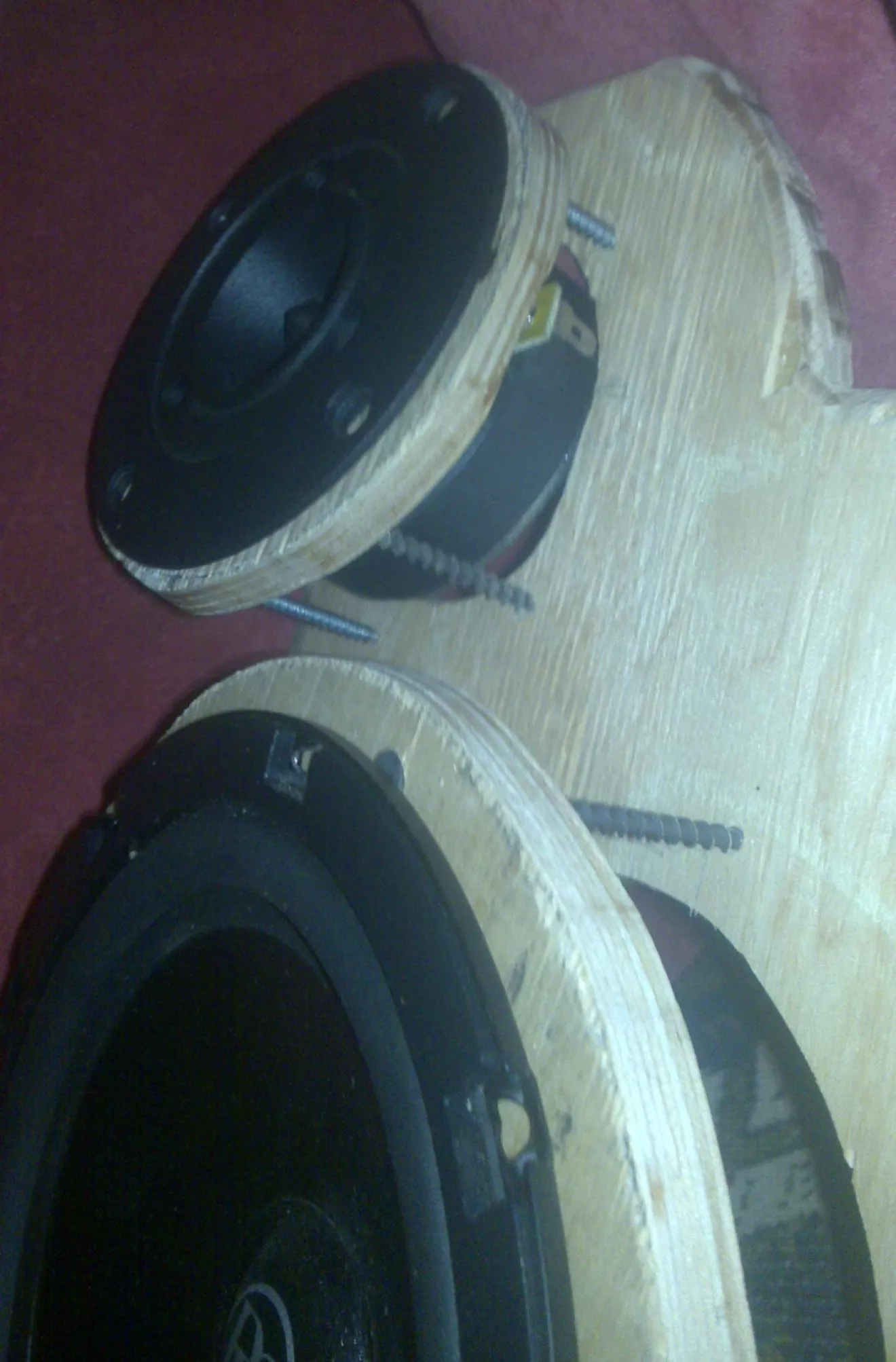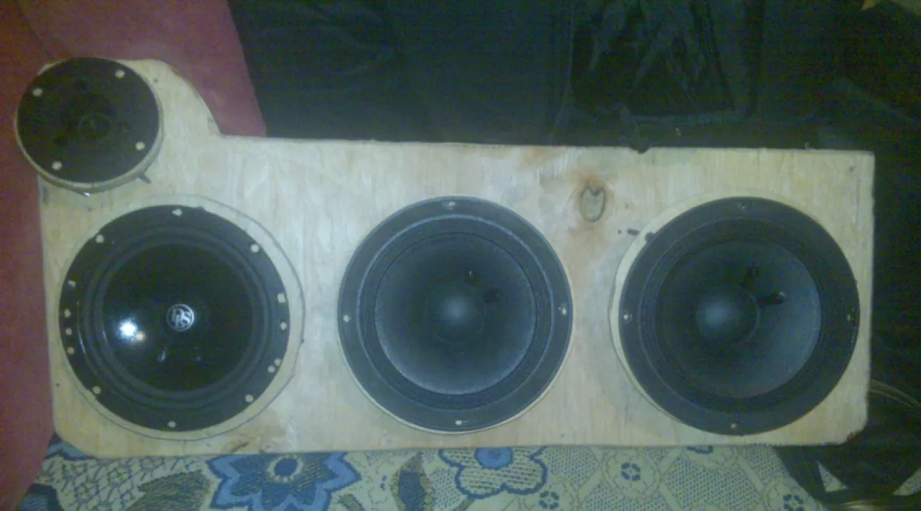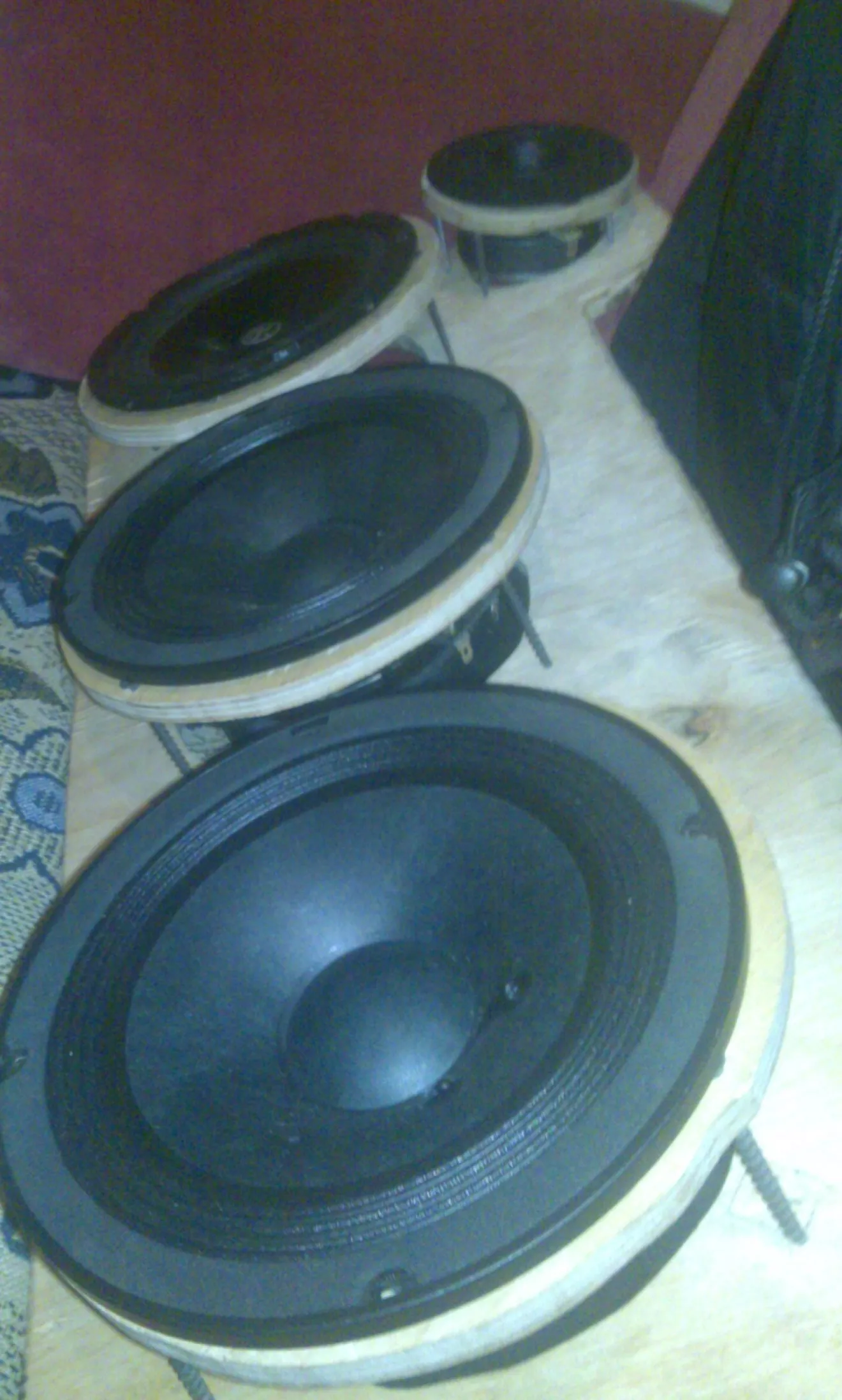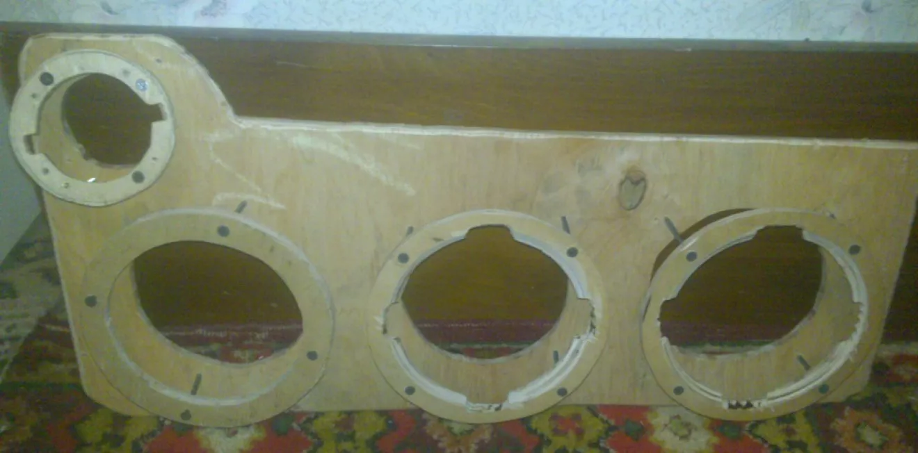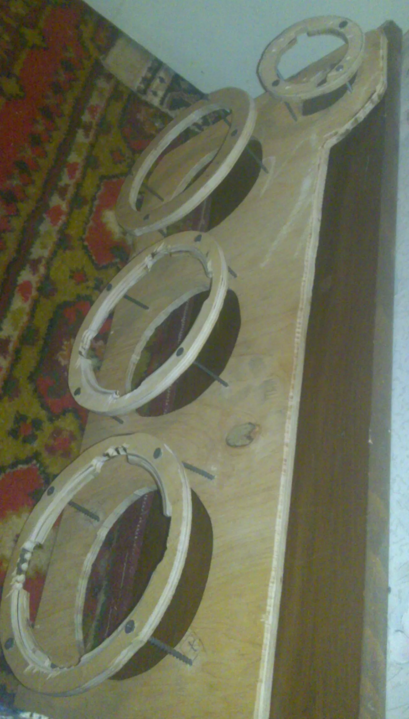 Потом начался процесс Макета, думал сидел, где сколько взять по длине, что б все получилось. Фанера 10 мм, Растояние от фанеры до круга динмакика — 4 см, изготовил контрольний инструмент, что б было все точно . И вот уже недавно начал делать. Вроде как получается.